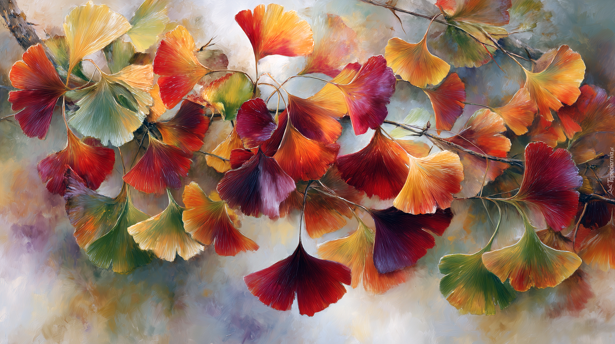 Edytor tapety: Kolorowe jesienne liście miłorzębu w zbliżeniu