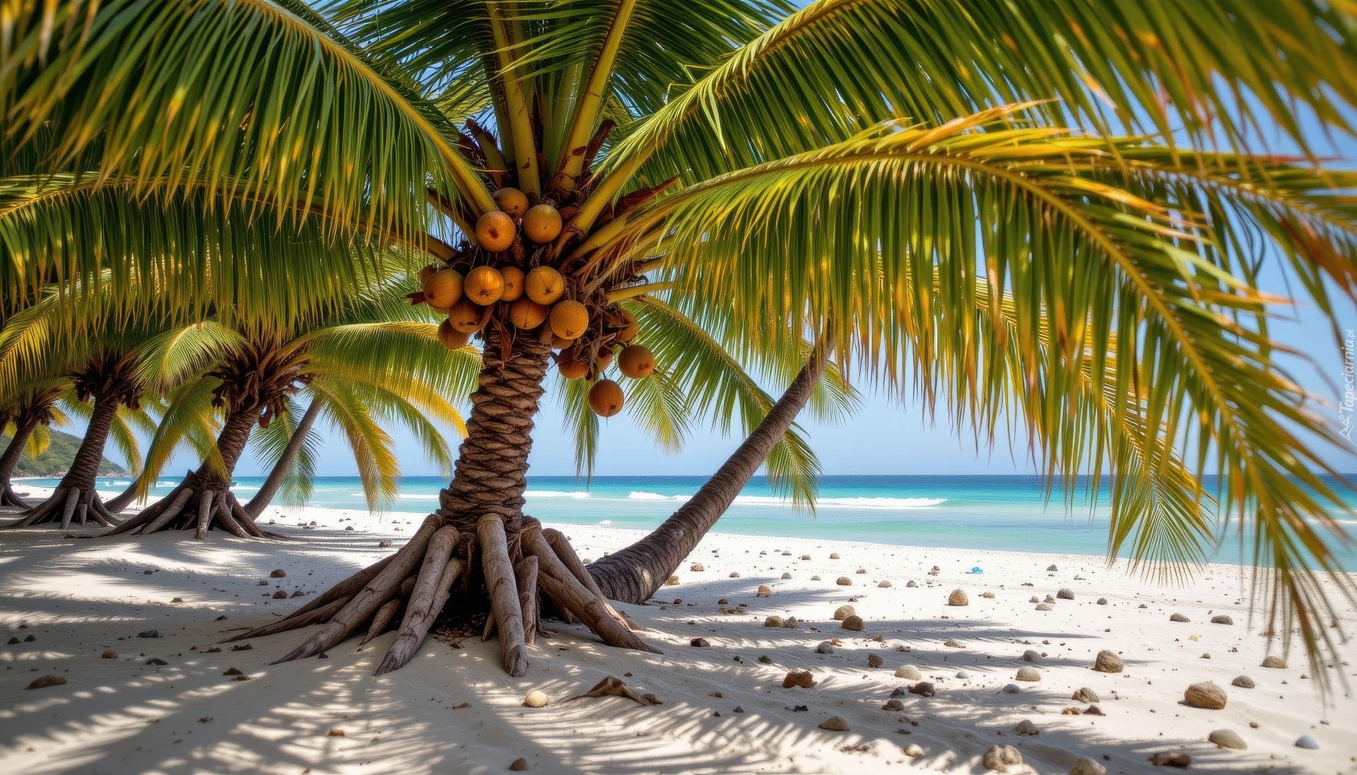 Edytor tapety: Palma z kokosami na morskiej plaży