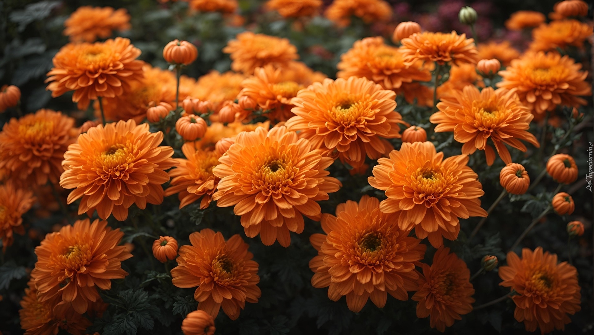Edytor tapety: Pomarańczowe chryzantemy z pąkami