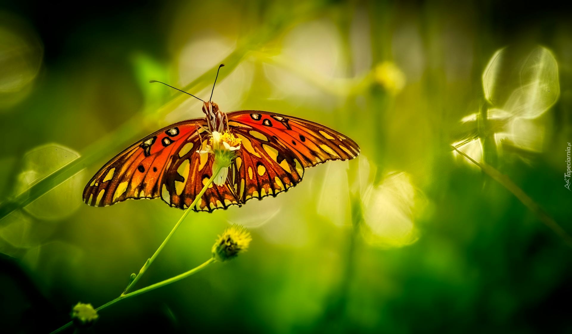 Edytor tapety: Motyl na roślinie na rozmytym tle