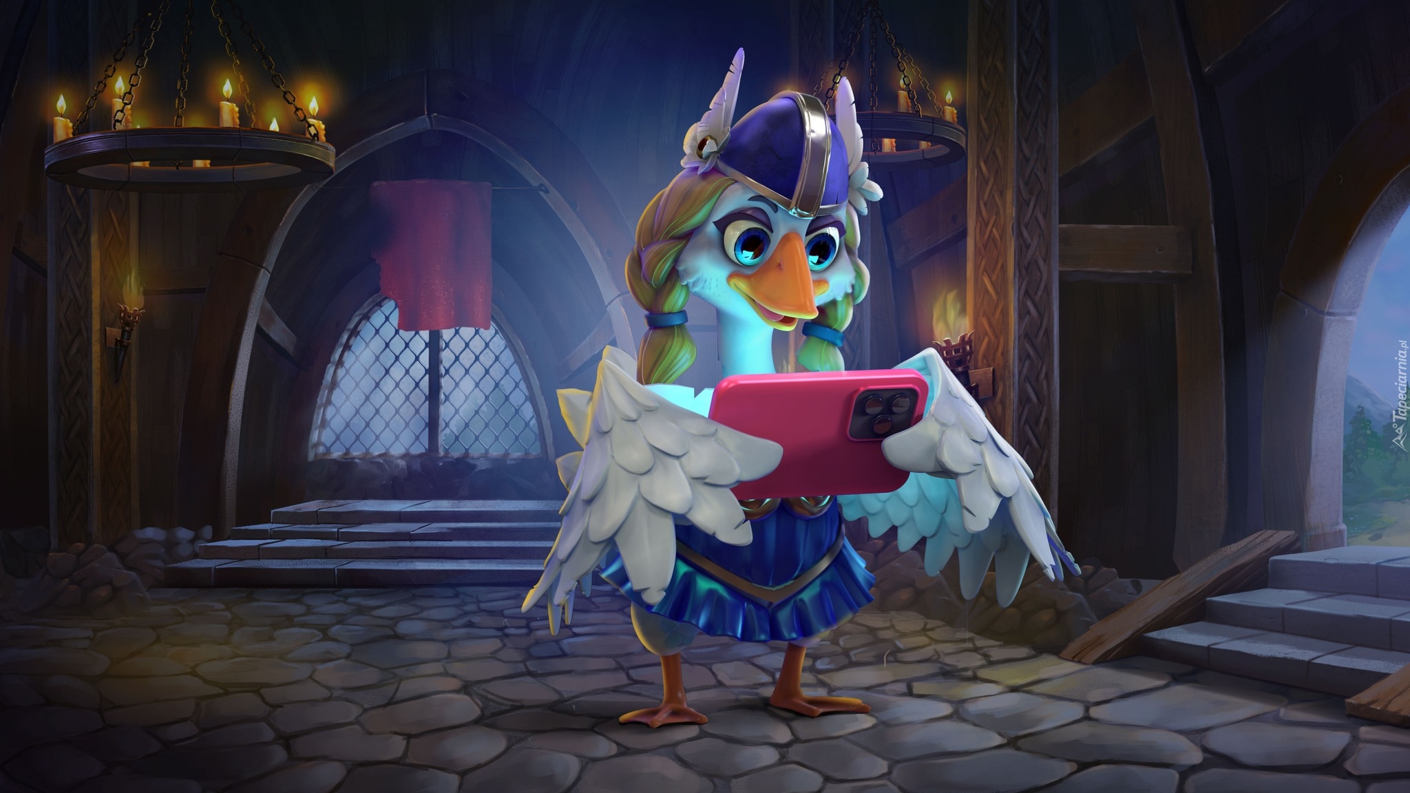Edytor tapety: Gęś ze smartfonem z gry Farmerama