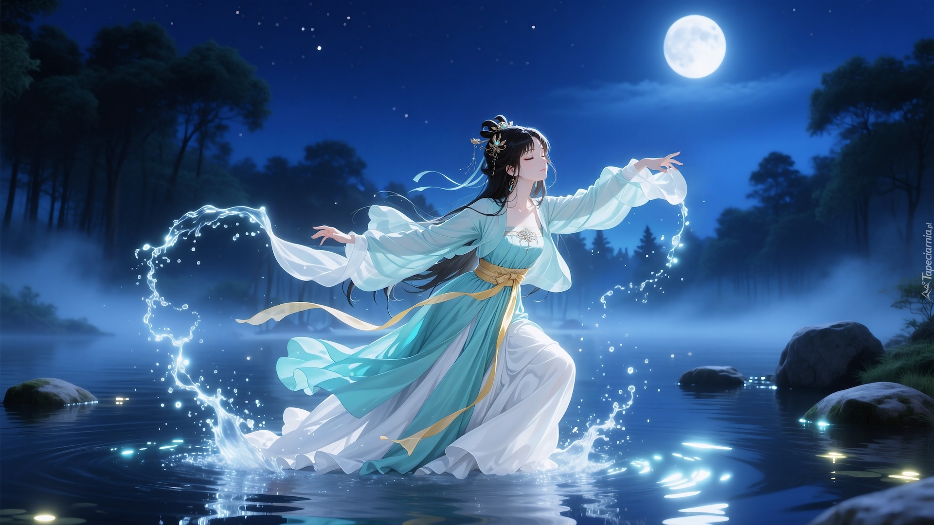Edytor tapety: Dziewczyna tańcząca nocą w wodzie
