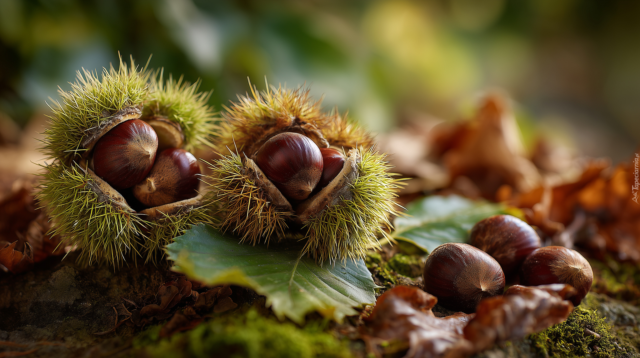 Edytor tapety: Kasztany jadalne na mchu