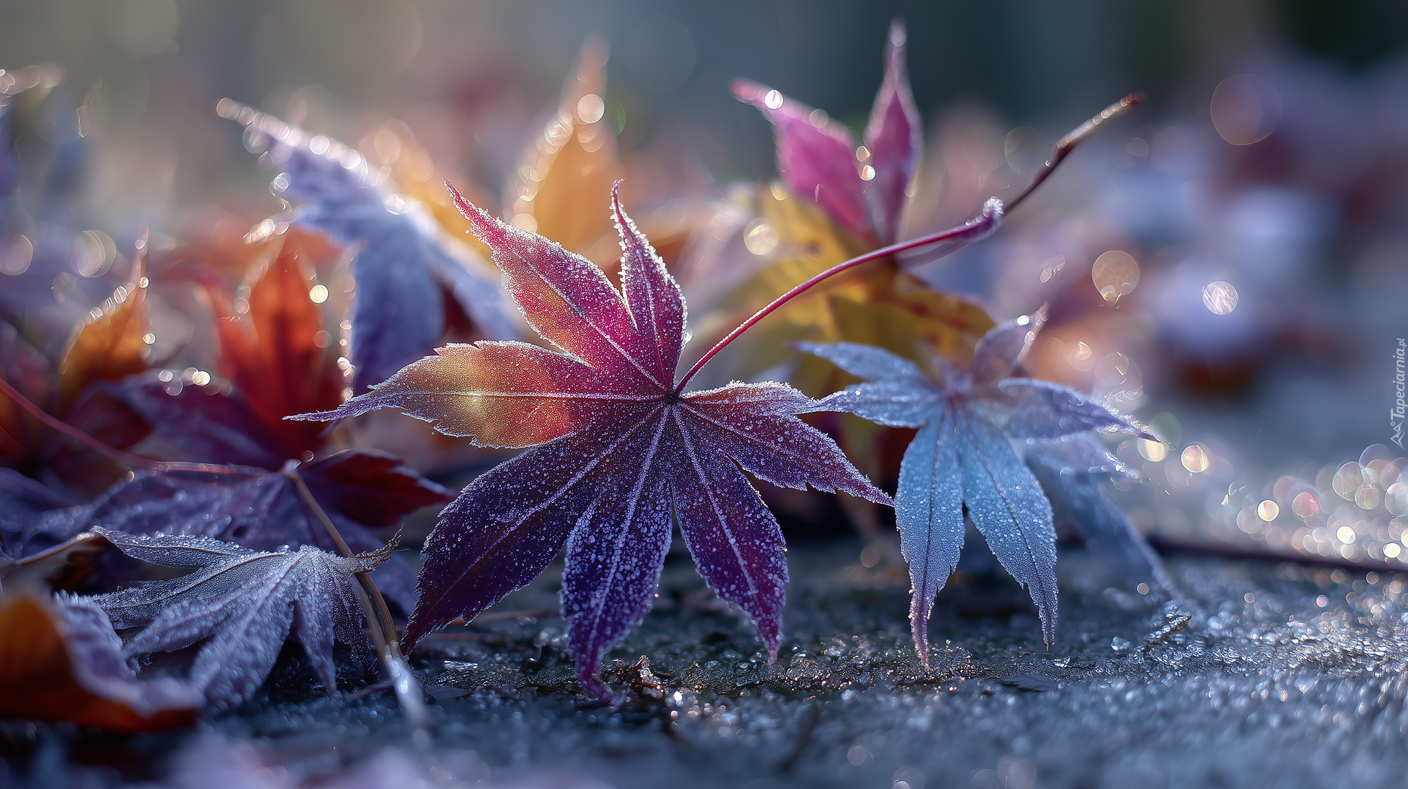Edytor tapety: Oszronione opadłe liście klonu palmowego