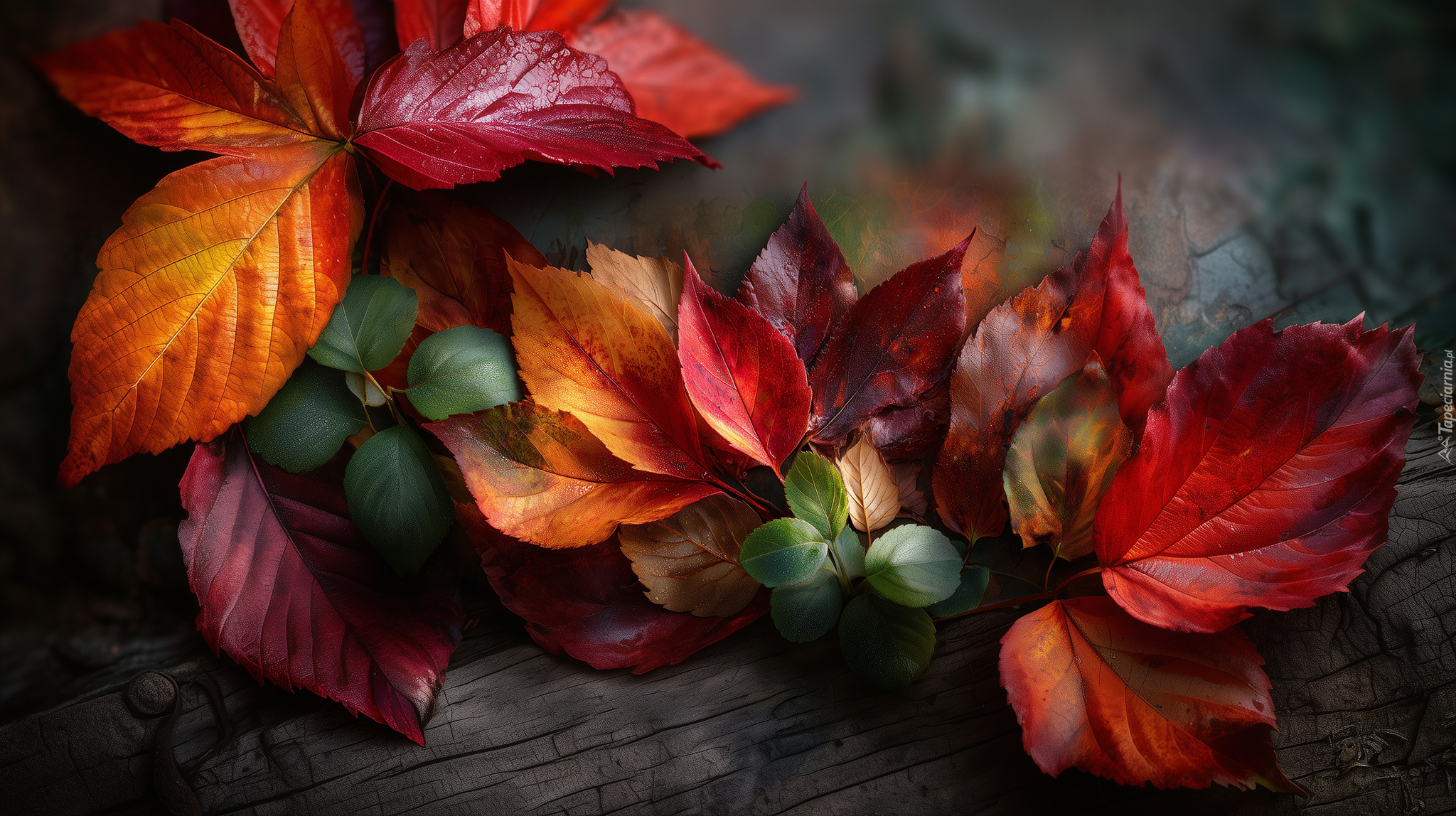 Edytor tapety: Różne kolorowe liście w zbliżeniu
