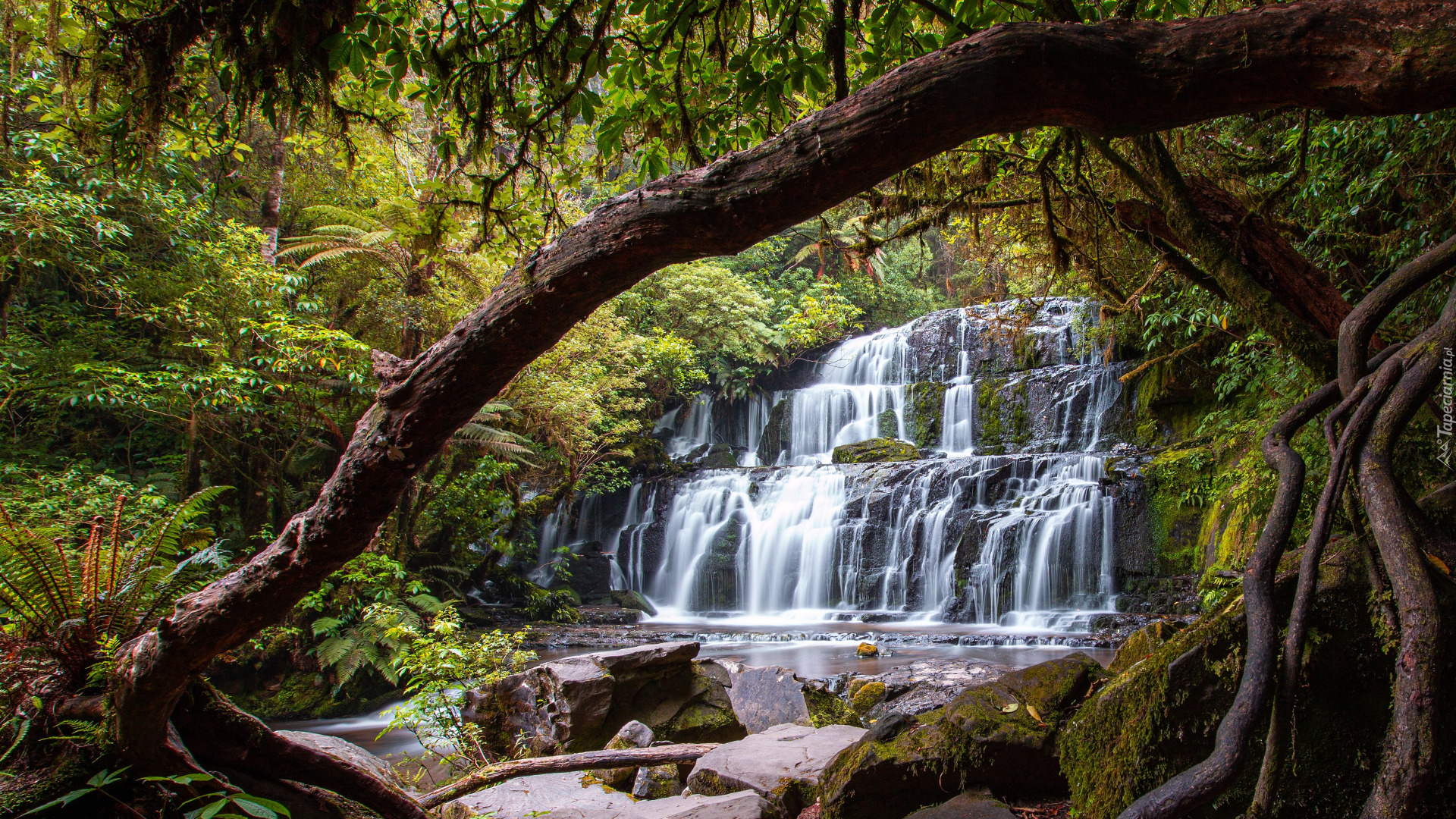 Edytor tapety: Wodospad kaskadowy Purakaunui Falls w Nowej Zelandii