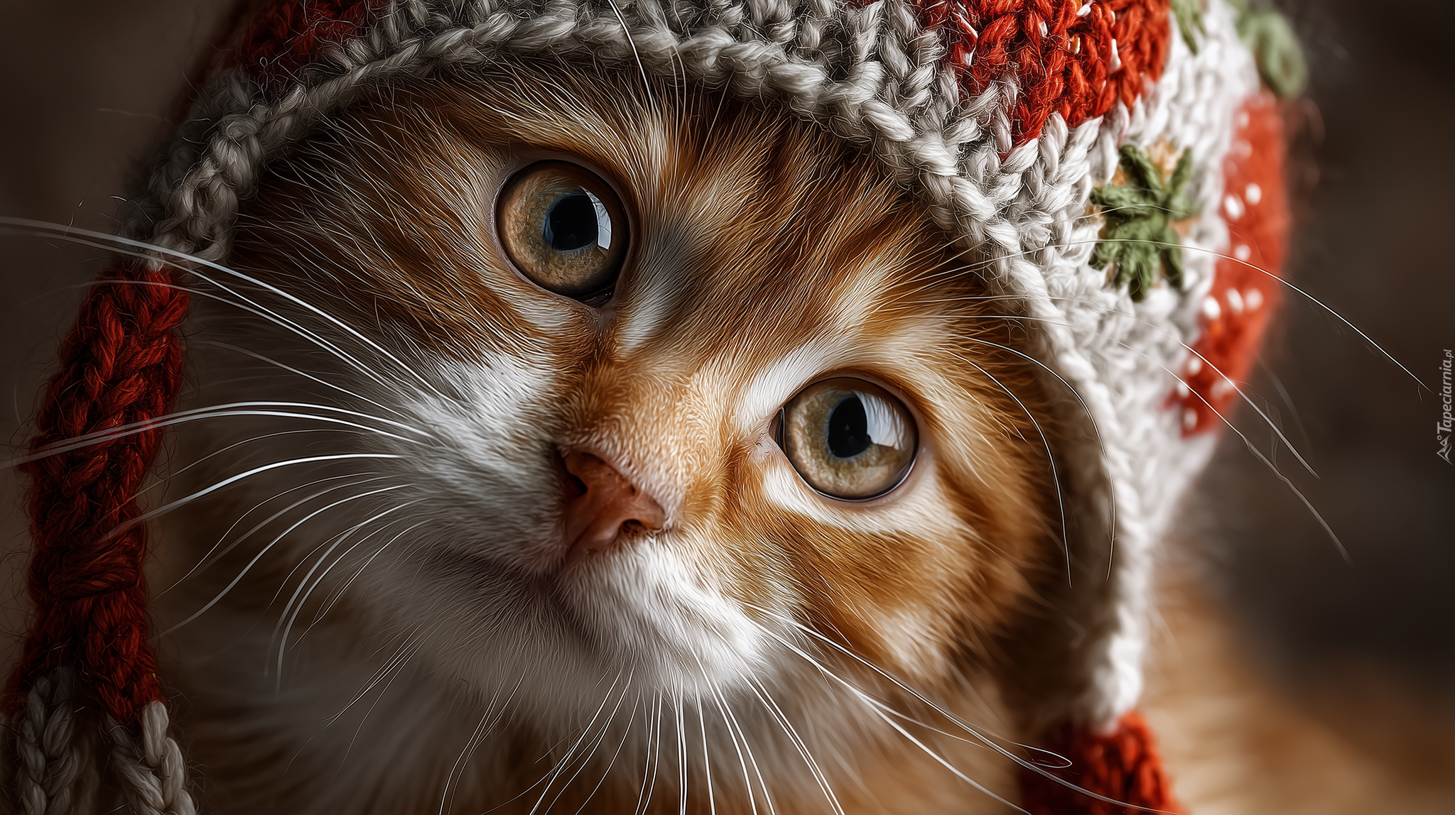 Edytor tapety: Mordka rudego kotka w wełnianej czapce