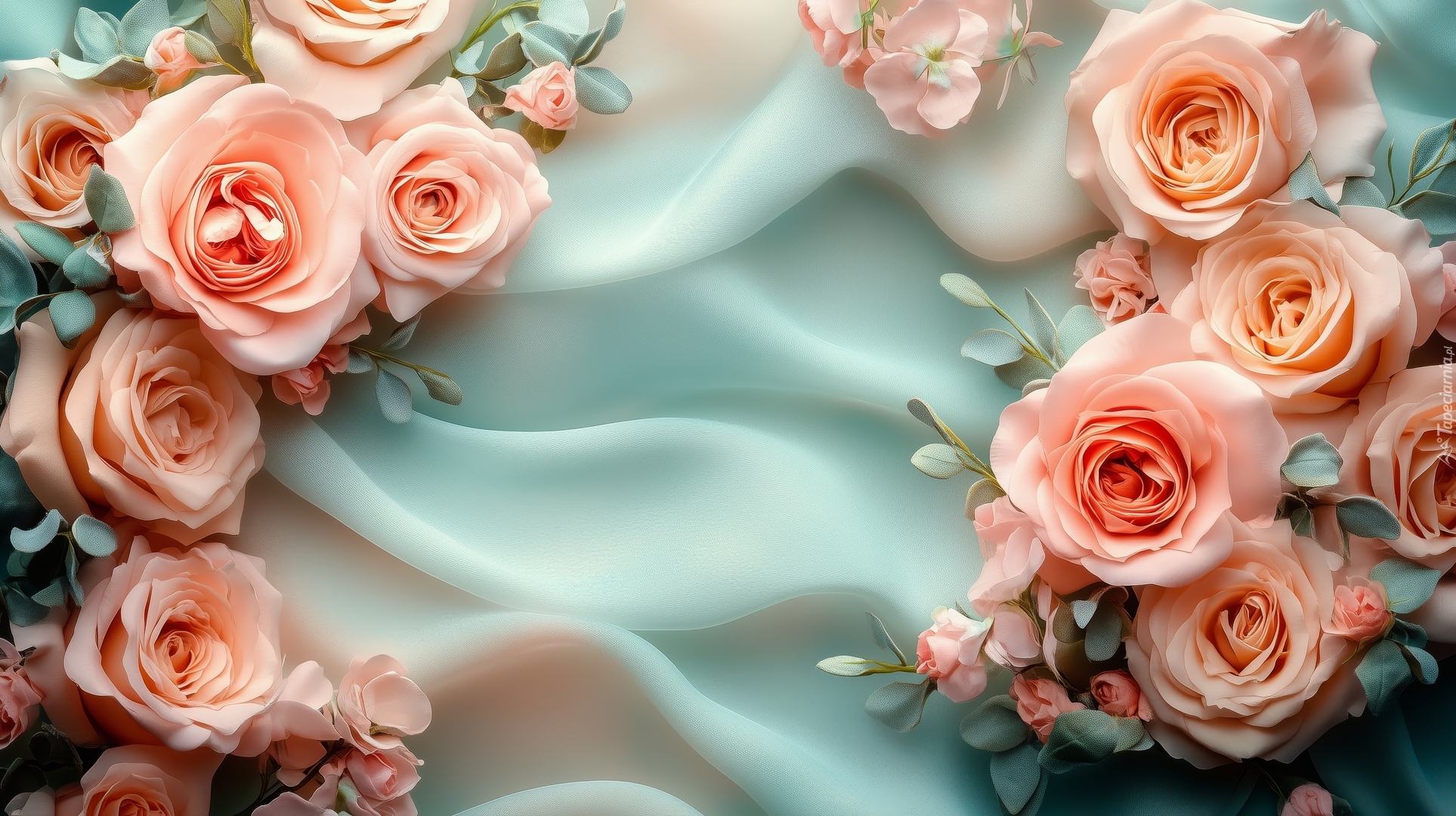 Edytor tapety: Różowe róże ułożone na tkaninie