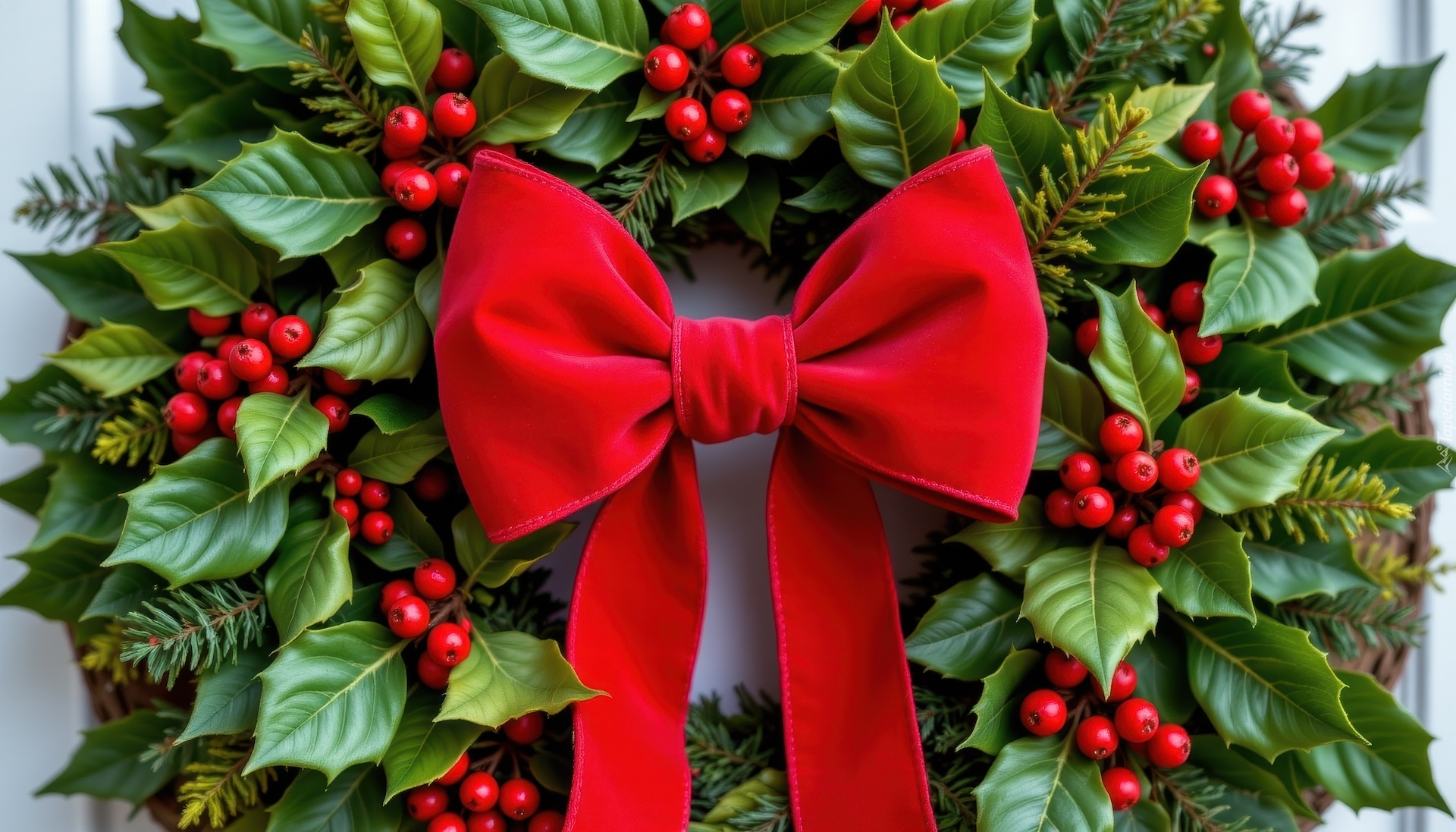 Edytor tapety: Zielony wieniec z czerwoną kokardą