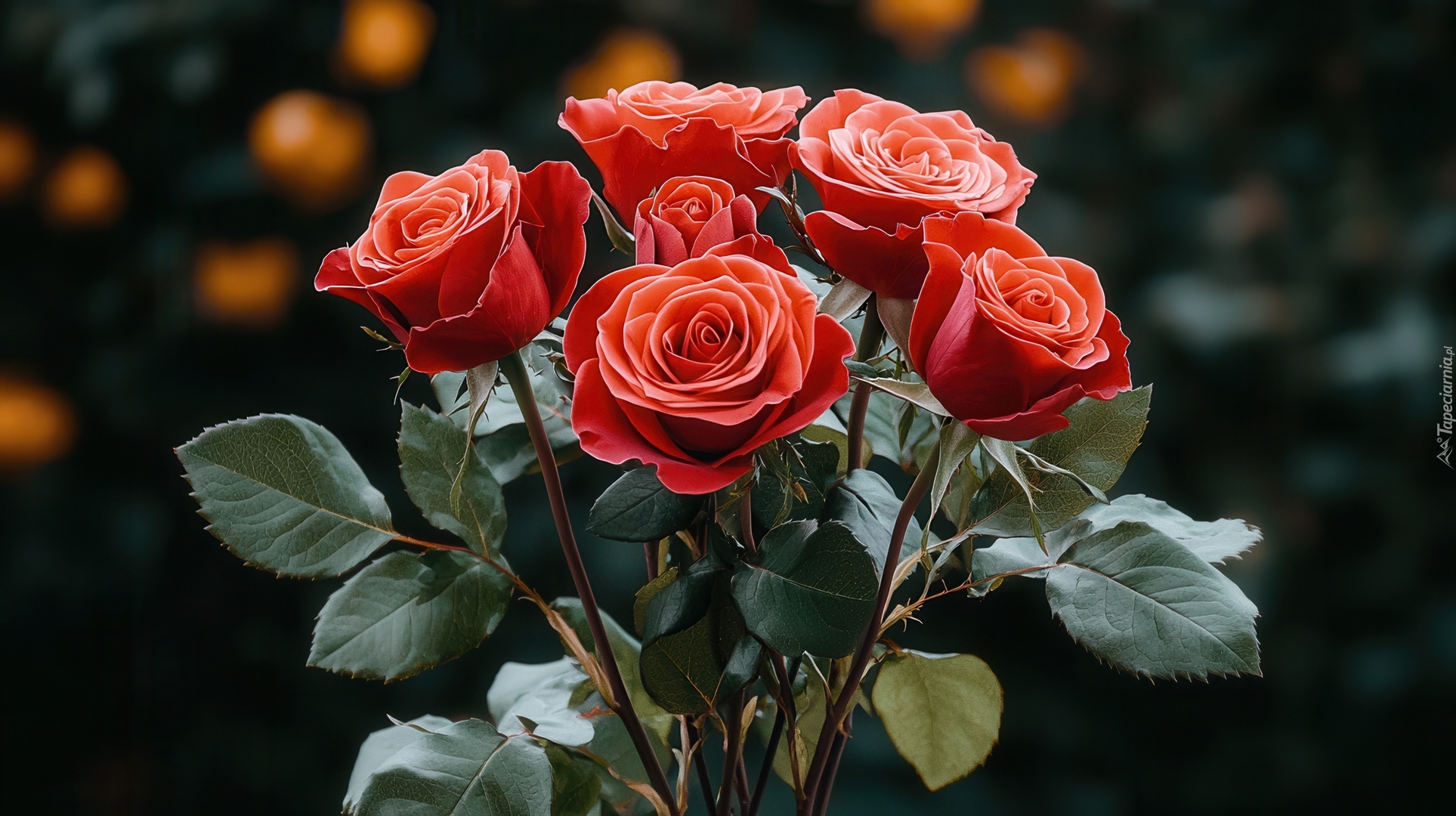 Edytor tapety: Rozkwitające czerwone róże w bukiecie