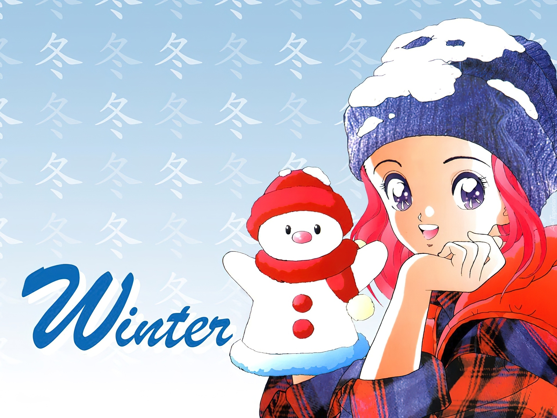 Edytor tapety: zima, bałwan, U Jin, dziewczynka