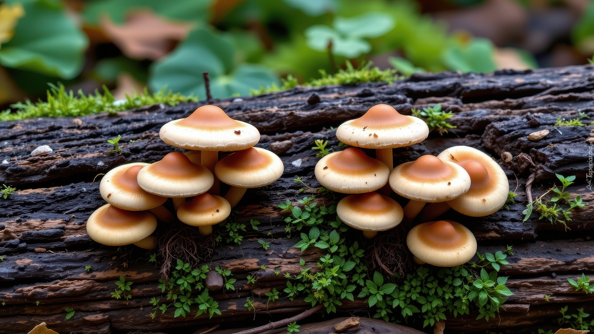 Edytor tapety: Brązowe grzyby rosnące na kłodzie drzewa