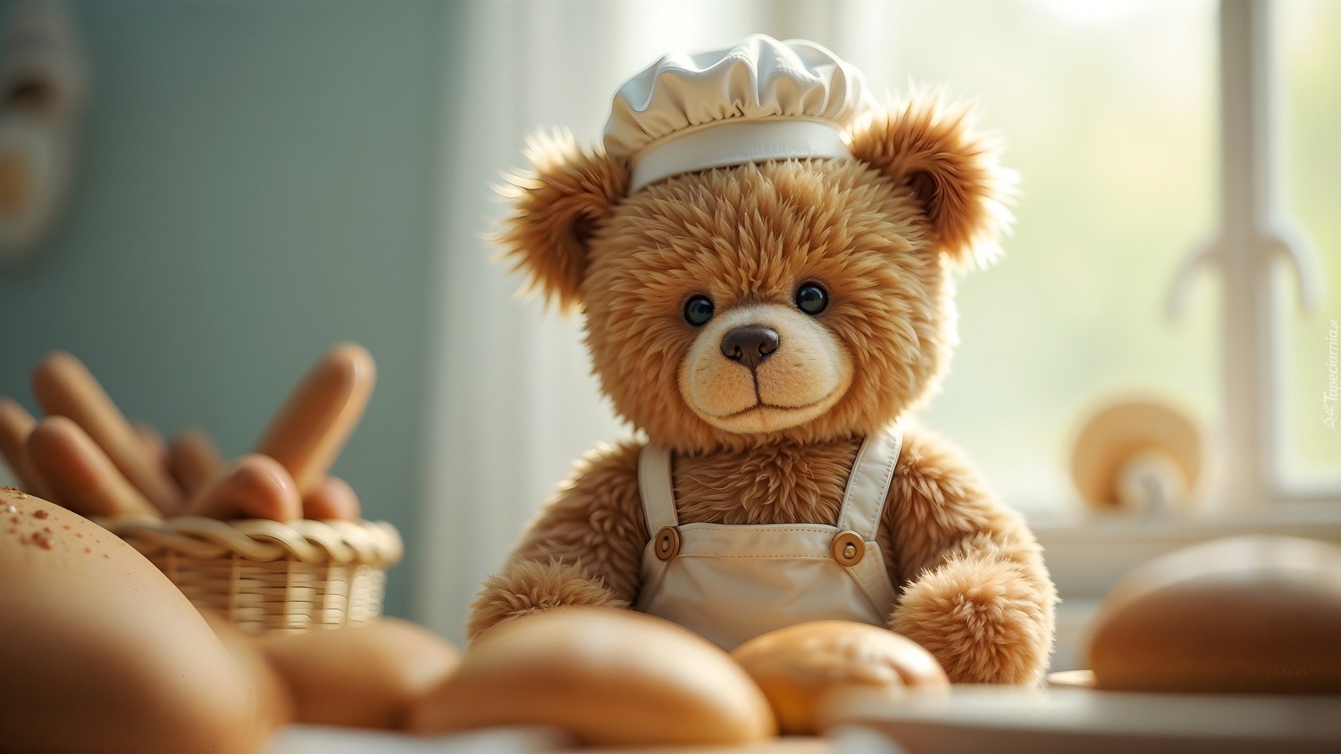 Edytor tapety: Pluszowy miś w stroju piekarza