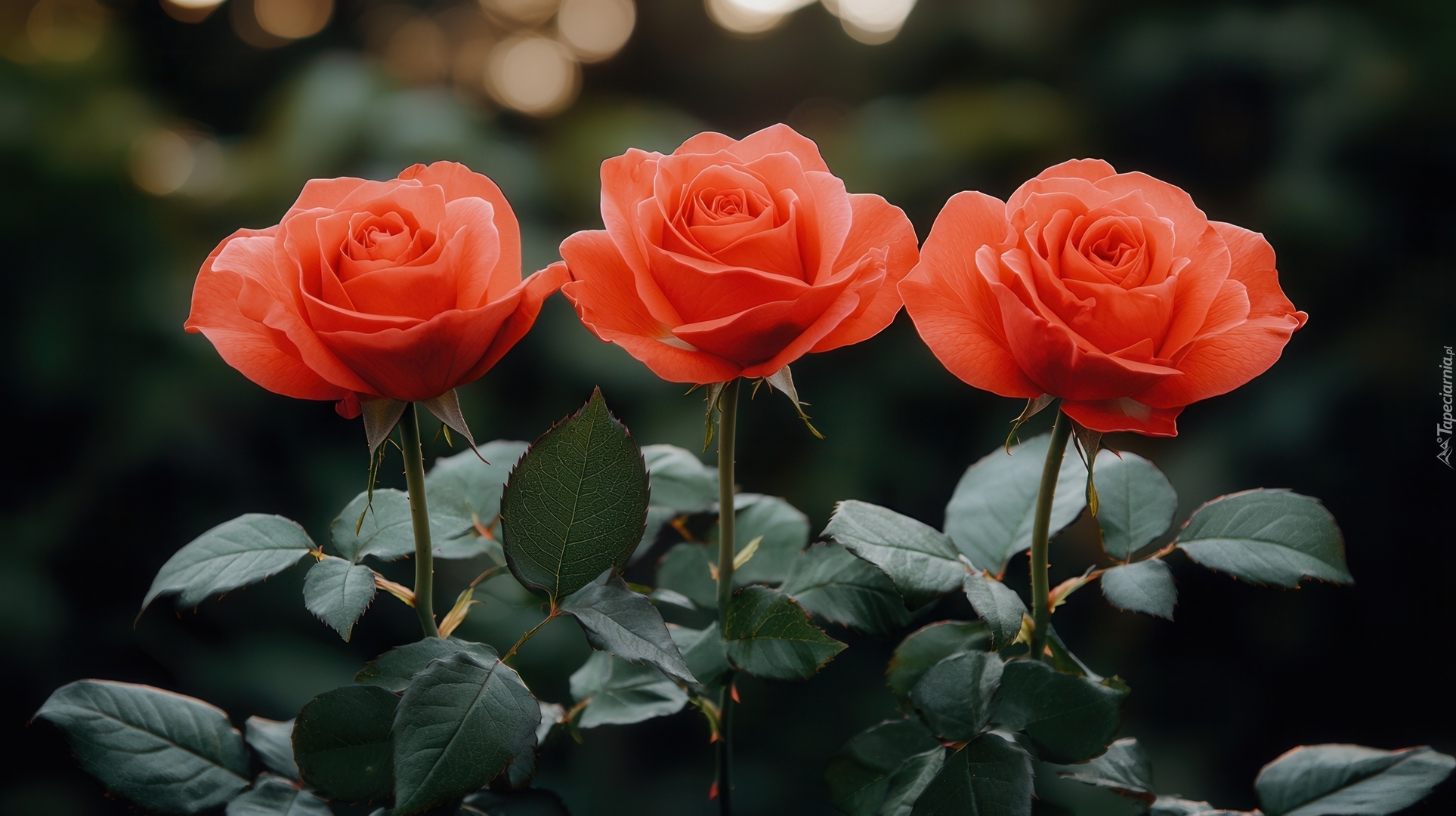 Edytor tapety: Trzy rozkwitające czerwone róże