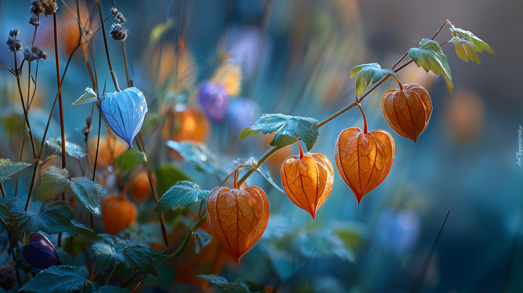 Edytor tapety: Miechunka rozdęta na rozmytym tle w grafice