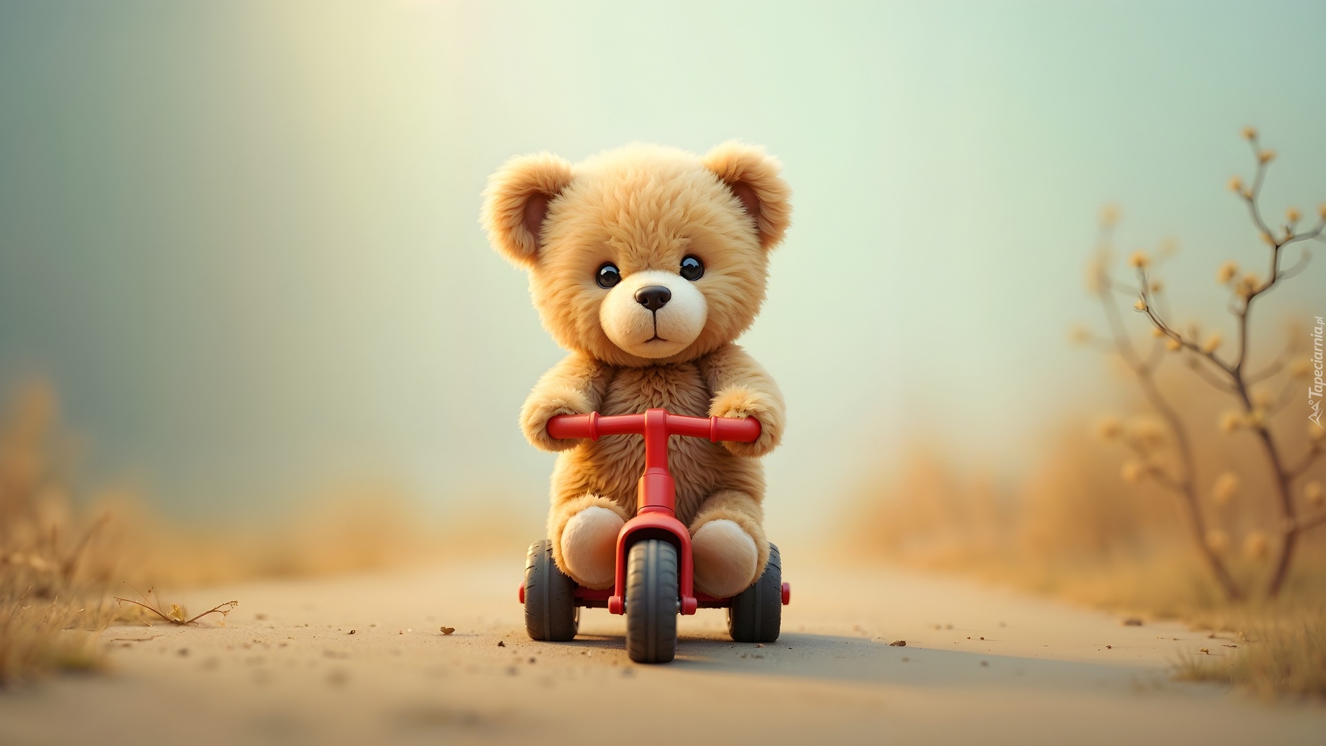 Edytor tapety: Pluszowy miś na małym rowerku