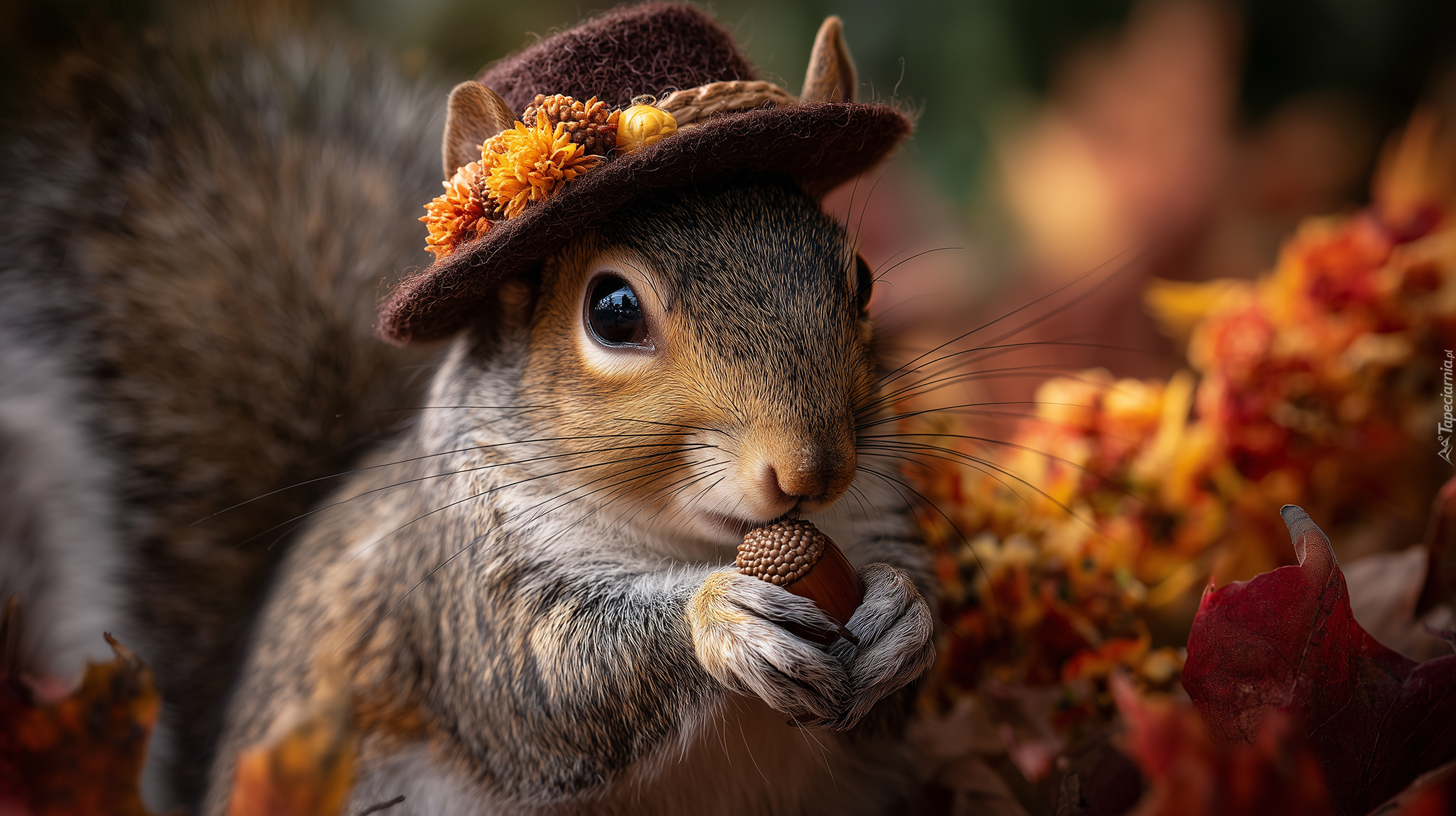 Edytor tapety: Grafika z wiewiórką w kapeluszu