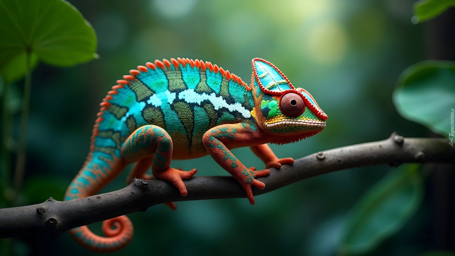 Edytor tapety: Kameleon na gałązce w zbliżeniu