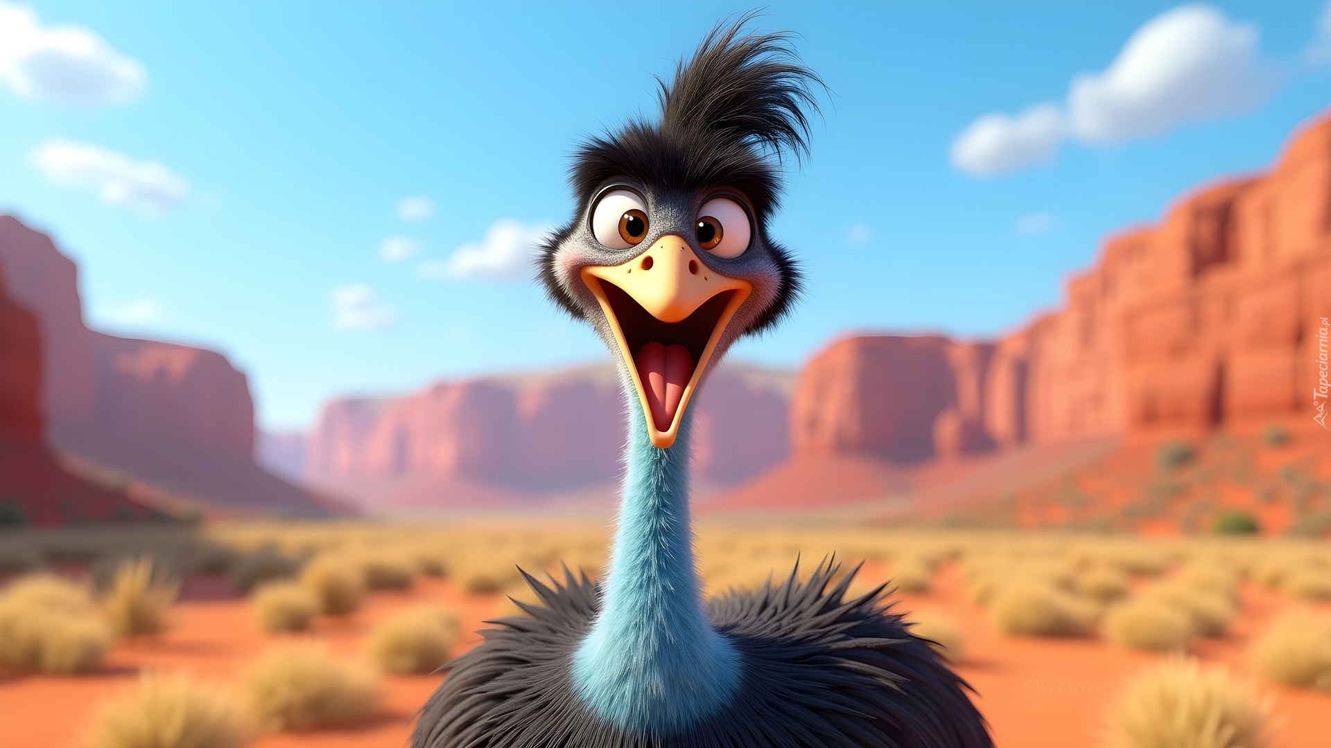 Edytor tapety: Wesoły struś na tle skał
