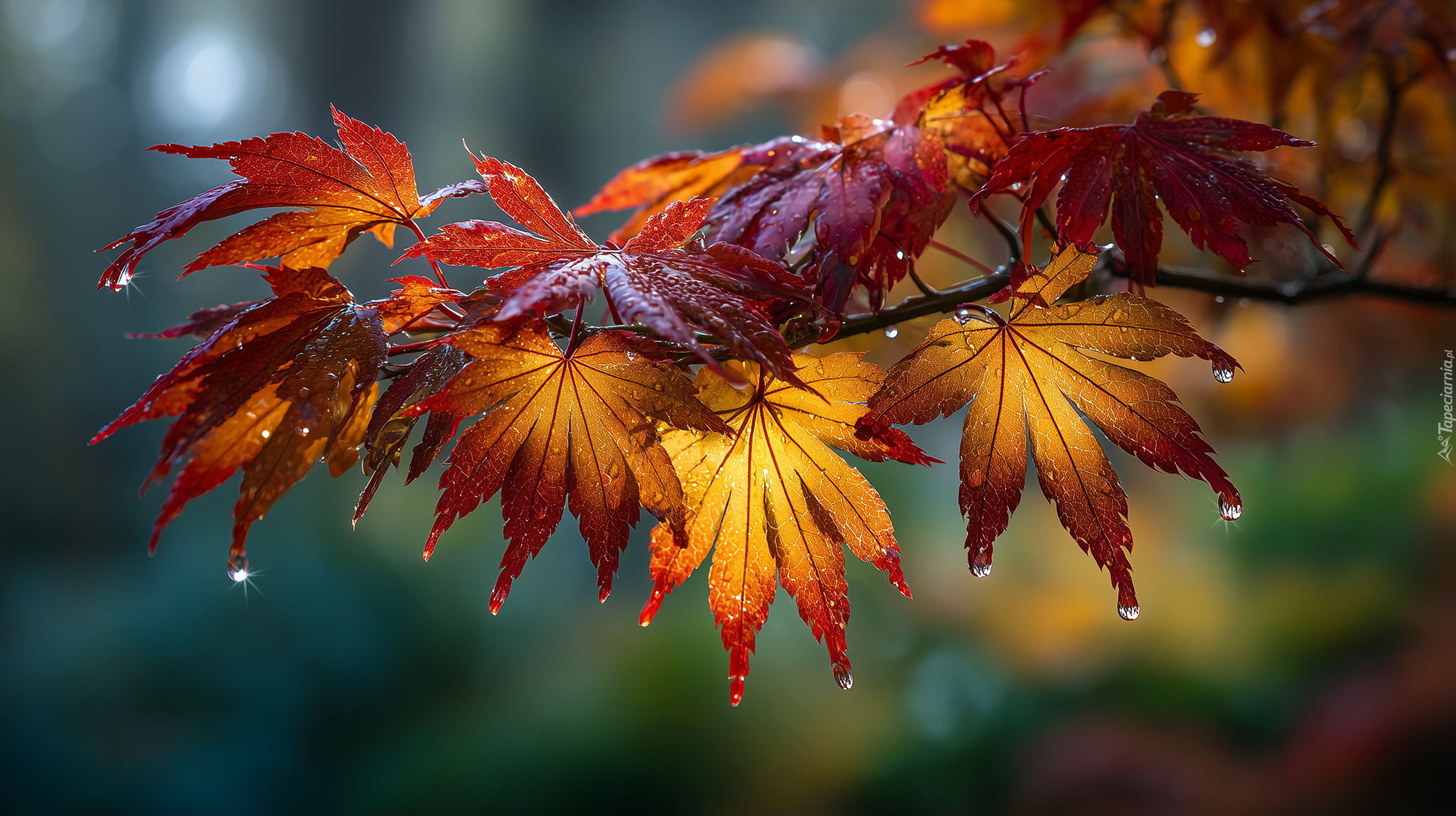 Edytor tapety: Podświetlone słońcem zmoknięte liście klonu