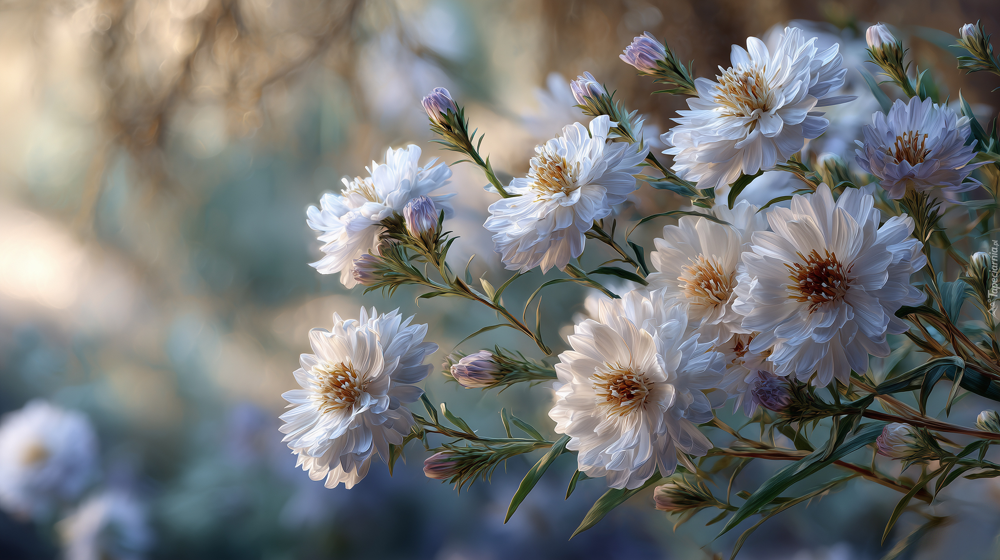 Edytor tapety: Białe astry na rozmytym tle w grafice