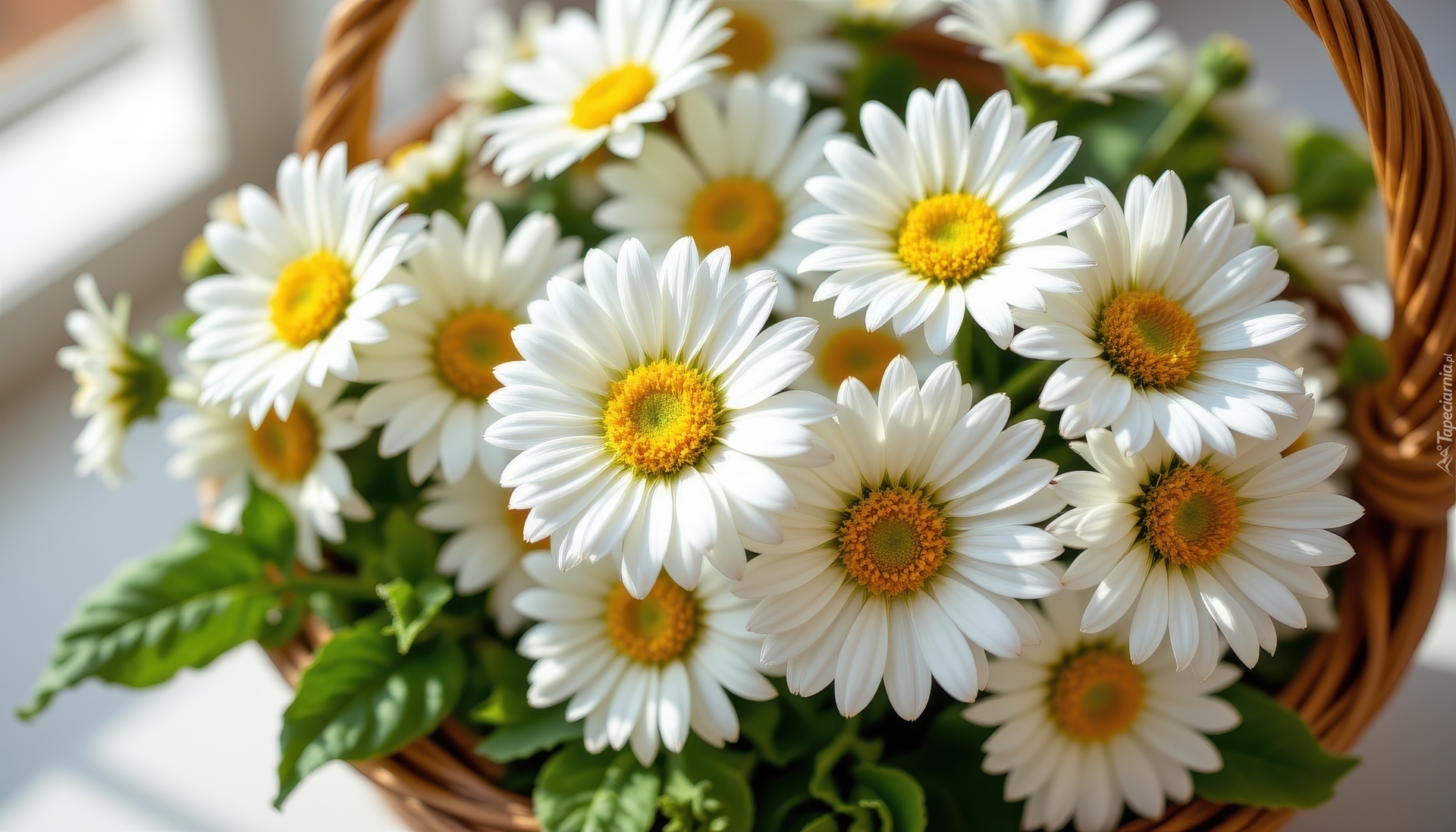 Edytor tapety: Rozświetlone białe stokrotki w koszyku