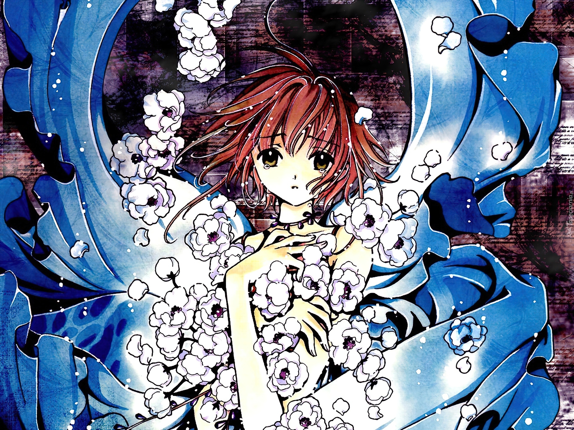 Edytor tapety: Tsubasa Reservoir Chronicles, szata, białe, kwiatki