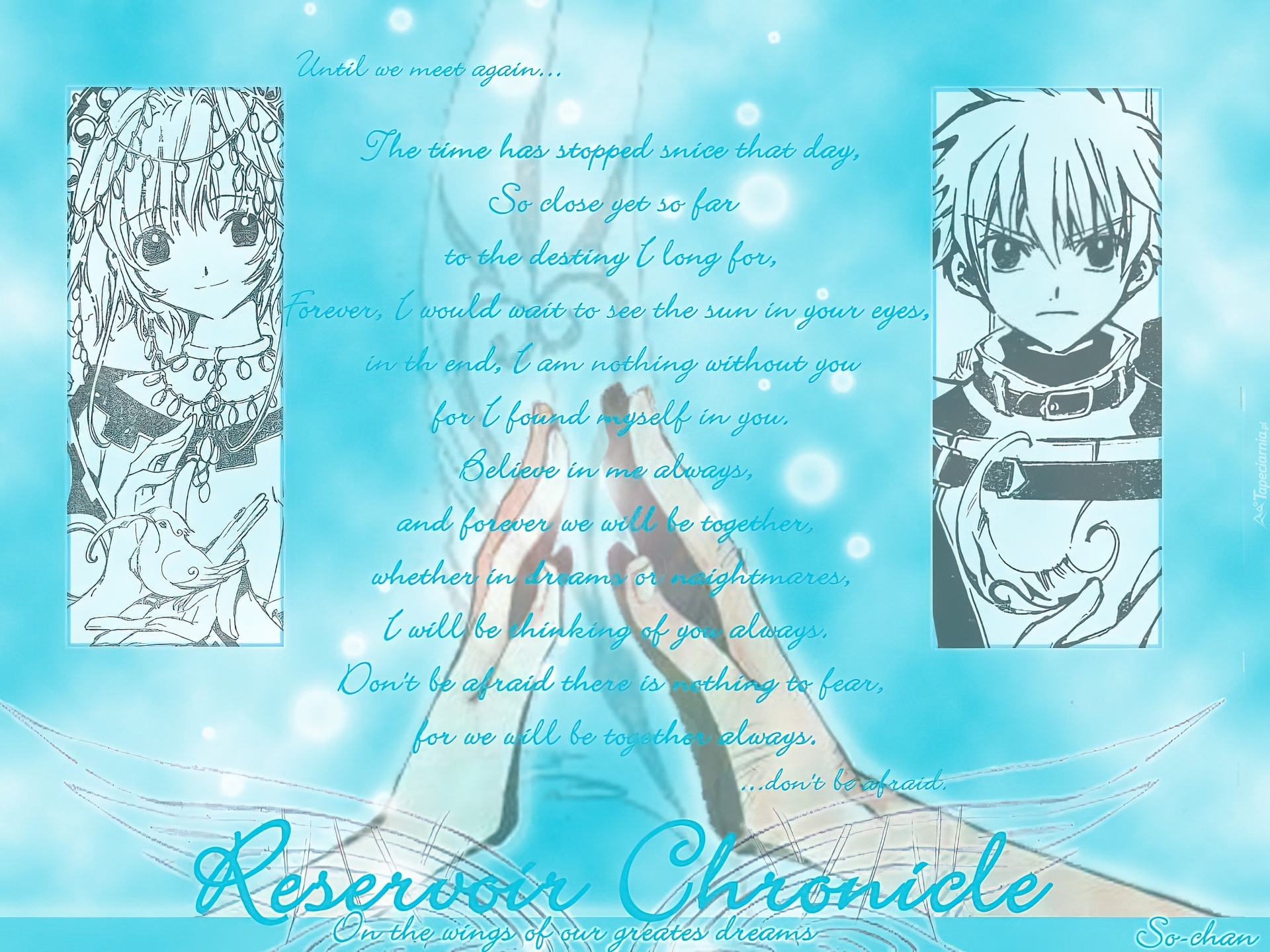 Edytor tapety: Tsubasa Reservoir Chronicles, dłonie, napisy, postacie