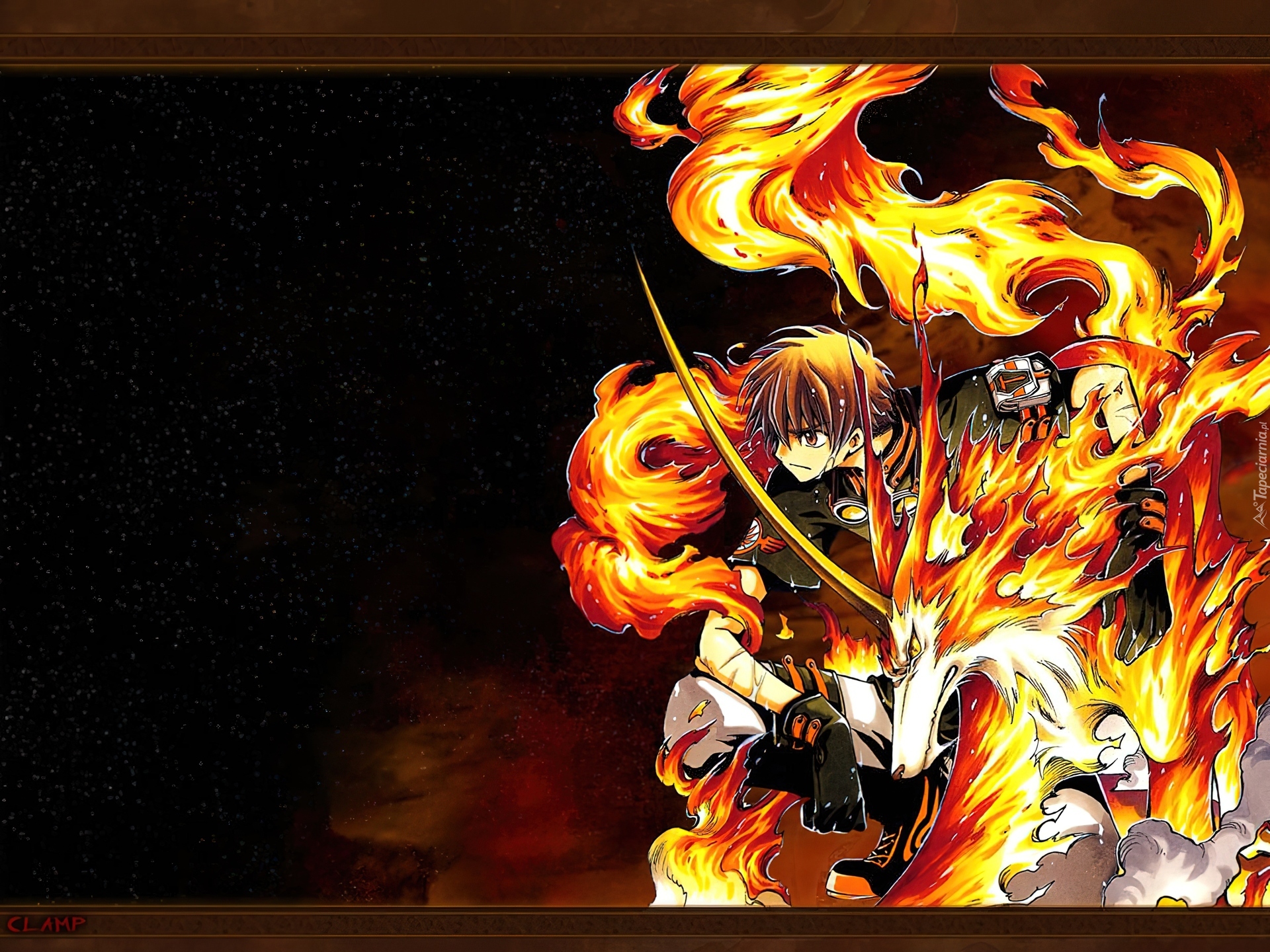 Edytor tapety: ogień, chłopak, Tsubasa Reservoir Chronicles