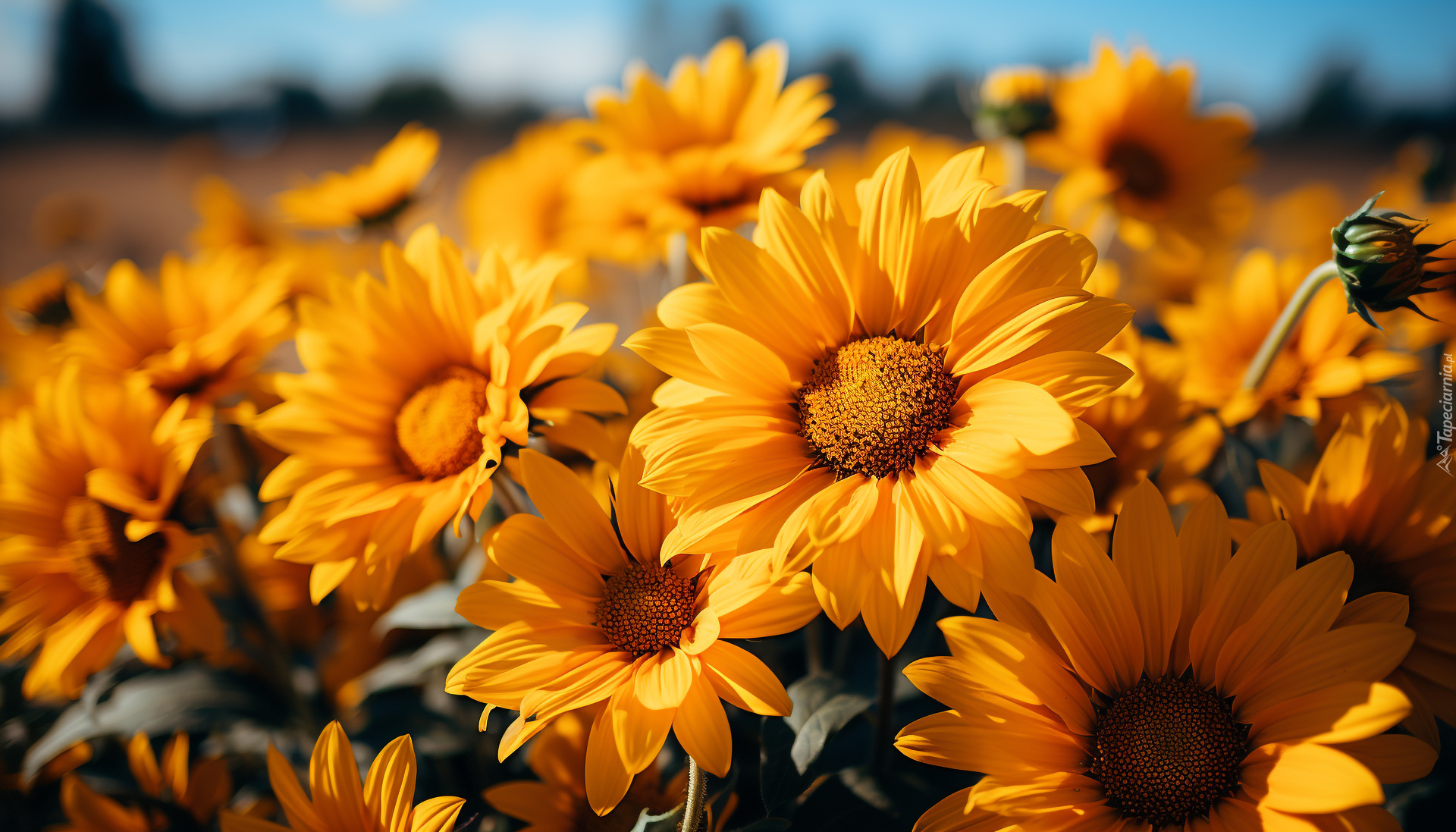 Edytor tapety: Rozświetlone światłem żółte kwiaty na polu