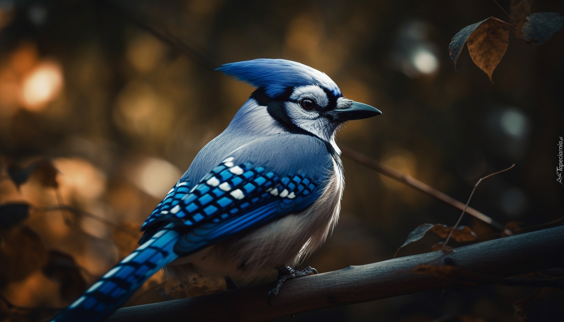 Edytor tapety: Modrosójka błękitna i jesienne liście na gałęzi