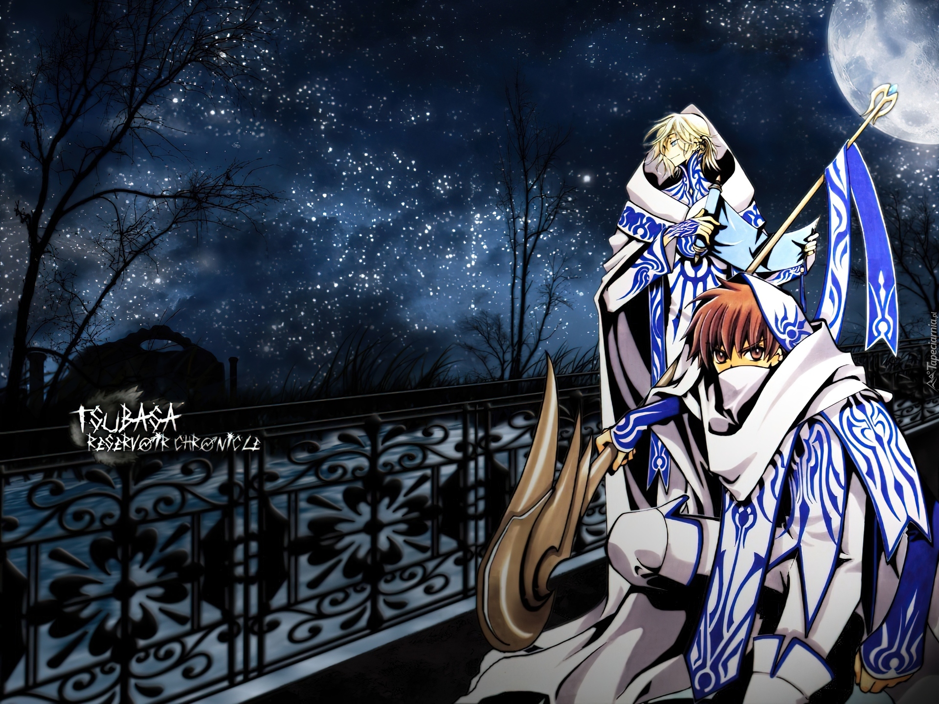 Edytor tapety: Tsubasa Reservoir Chronicles, noc, płot, postacie