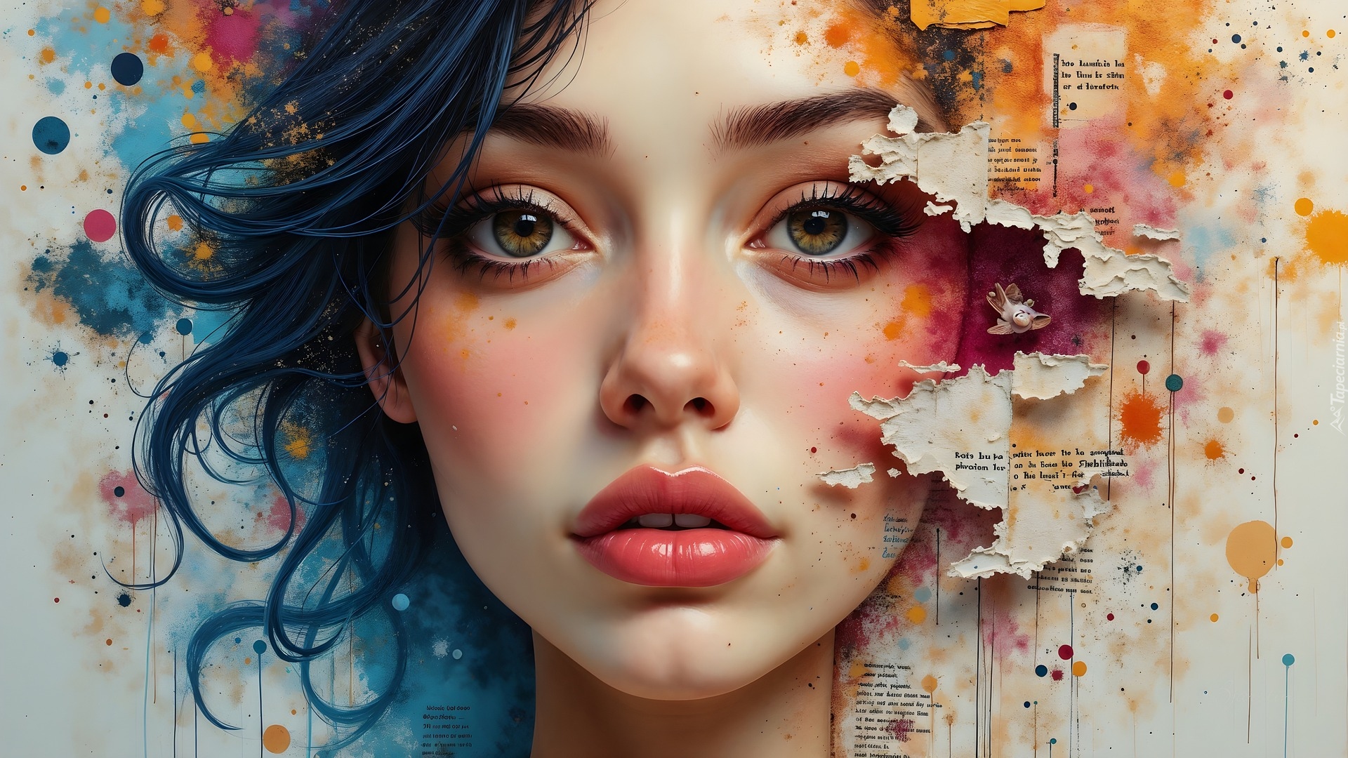 Edytor tapety: Grafika z twarzą dziewczyny w zbliżeniu