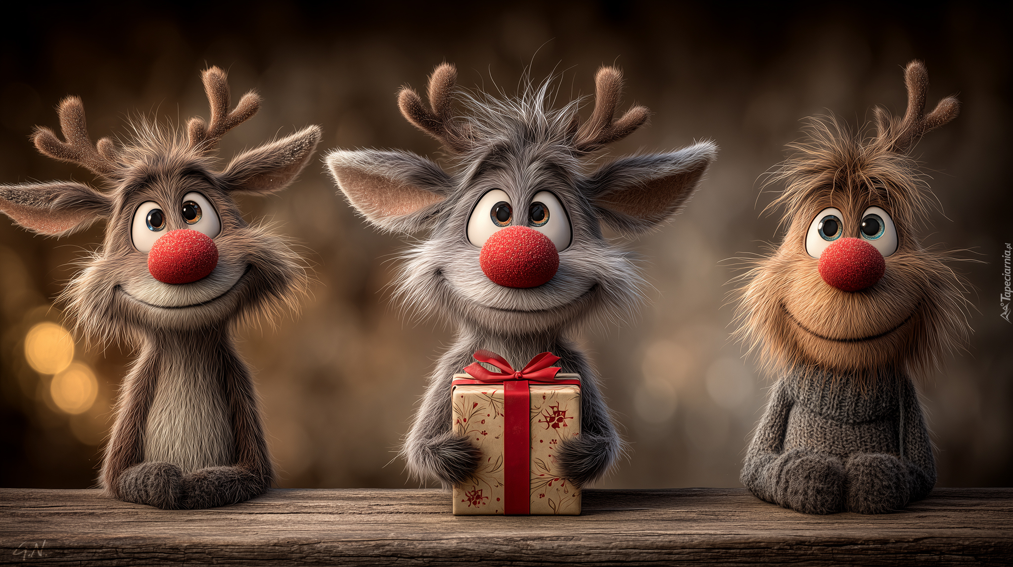 Edytor tapety: Trzy renifery z prezentem