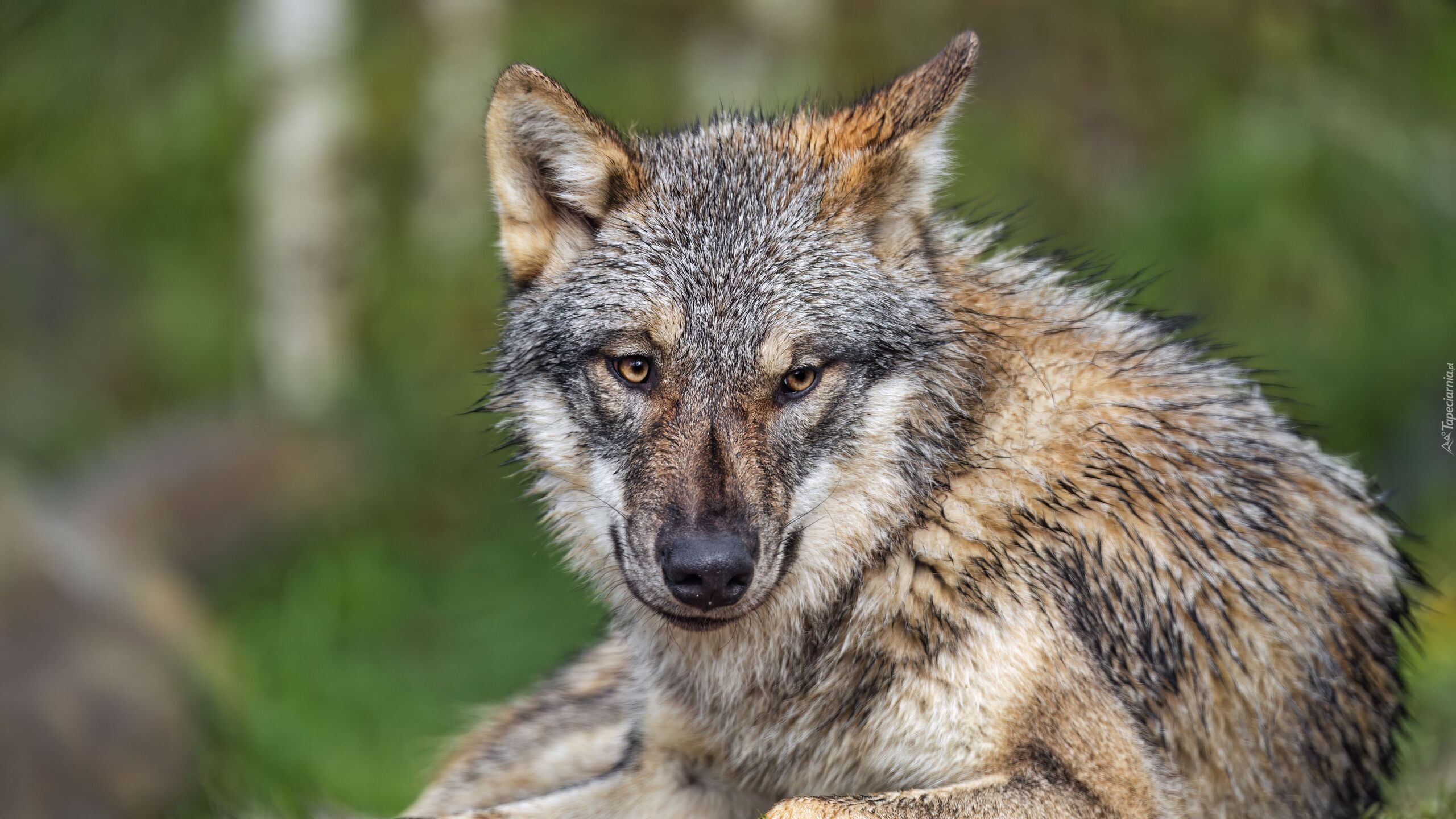 Edytor tapety: Leżący szary wilk