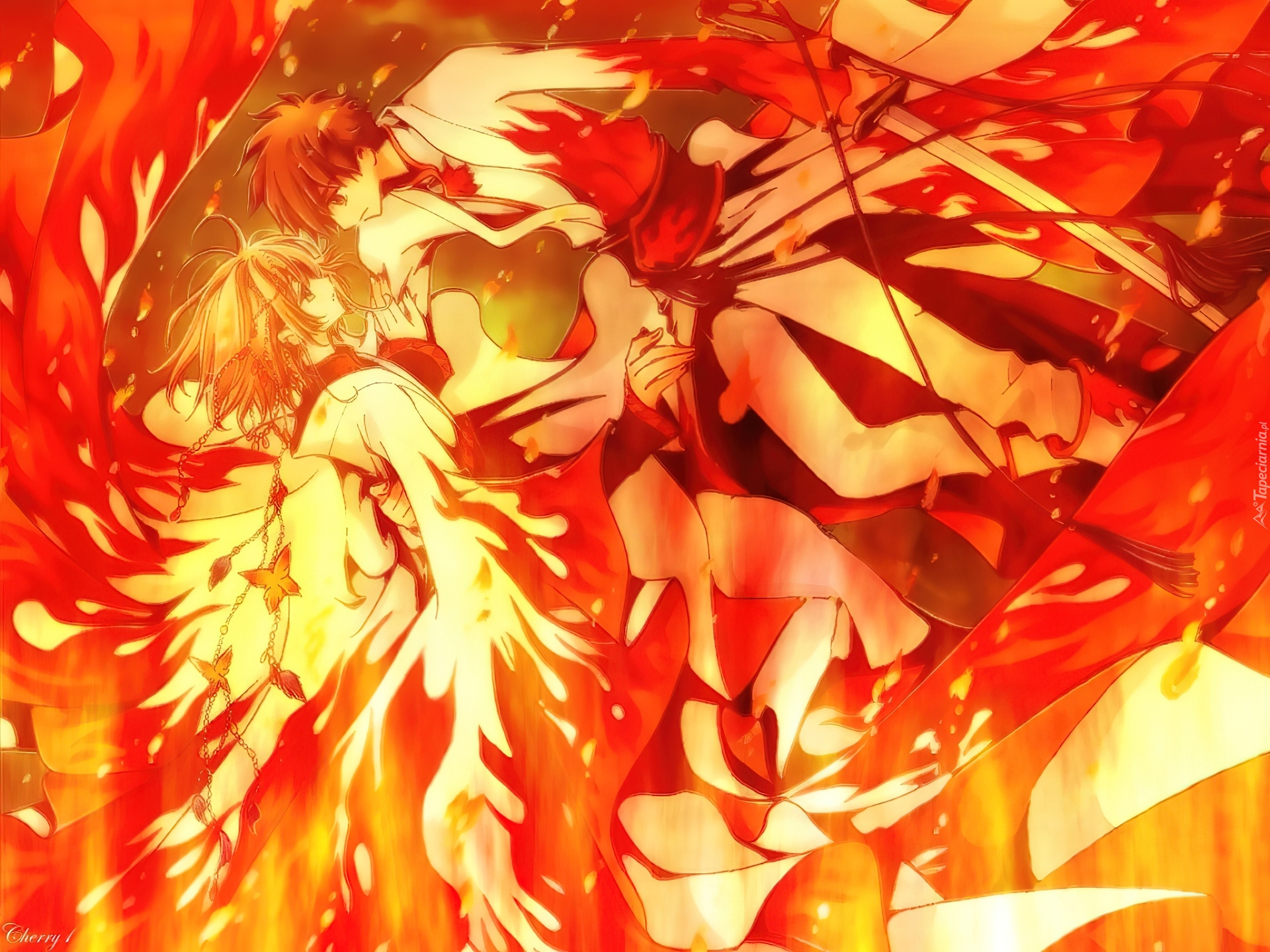 Edytor tapety: Tsubasa Reservoir Chronicles, zakochani, pomarańczowe, tło