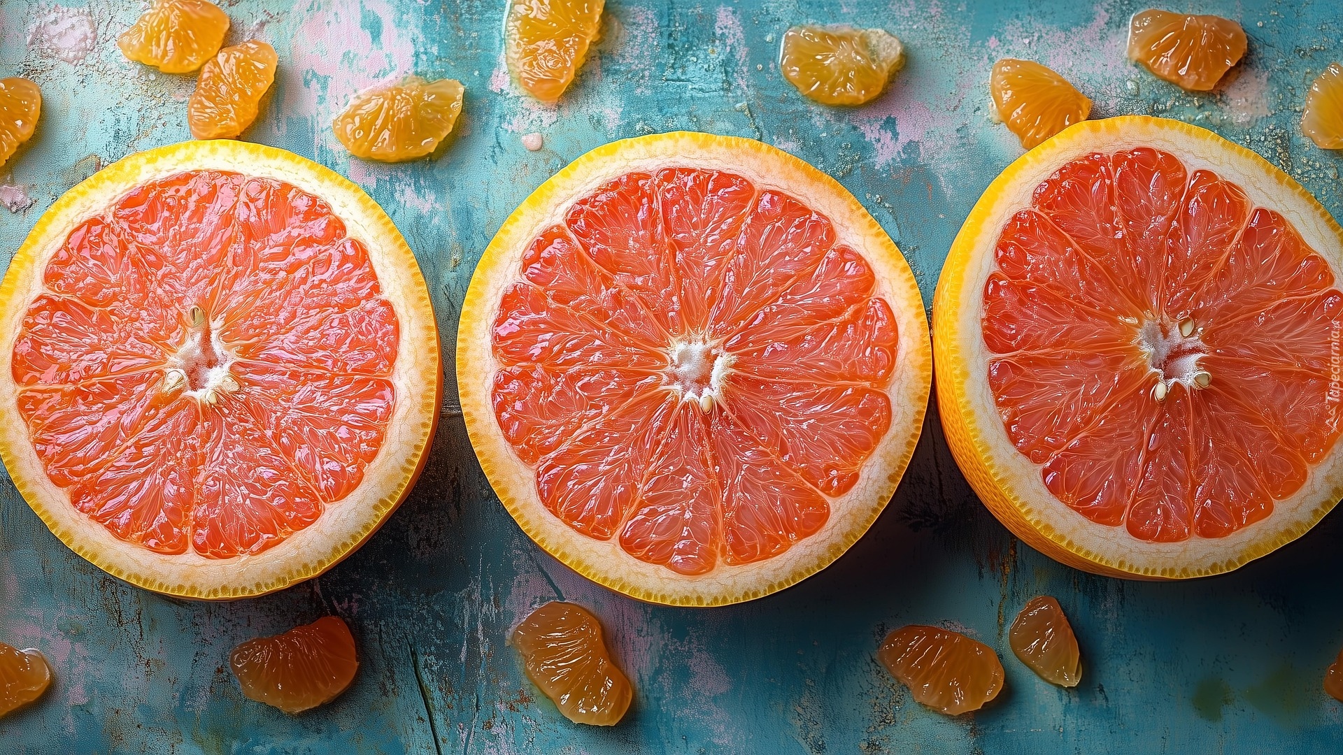 Edytor tapety: Plasterki grejpfruta na kolorowym tle