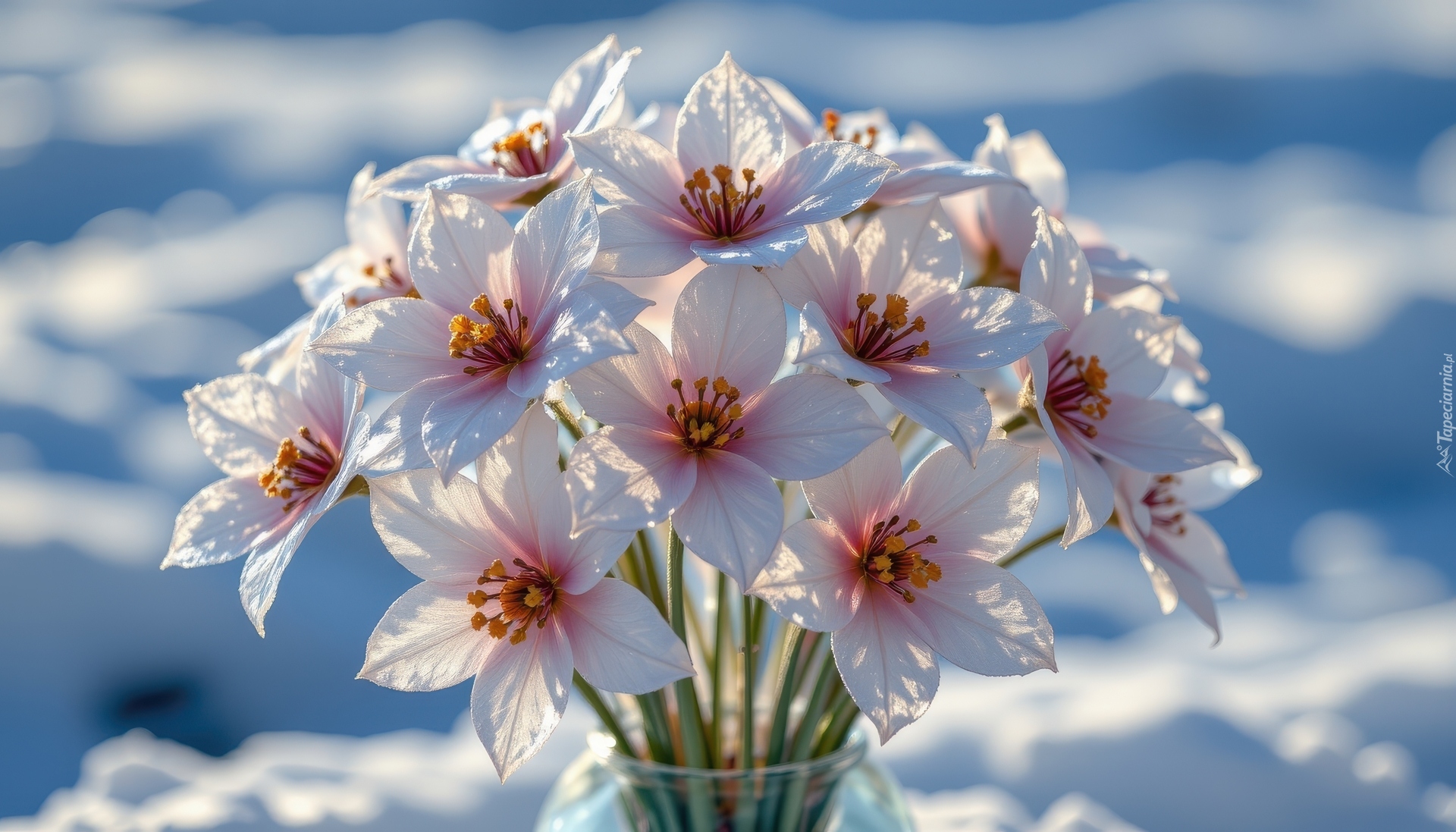 Edytor tapety: Rozświetlone biało-różowe kwiaty w wazonie