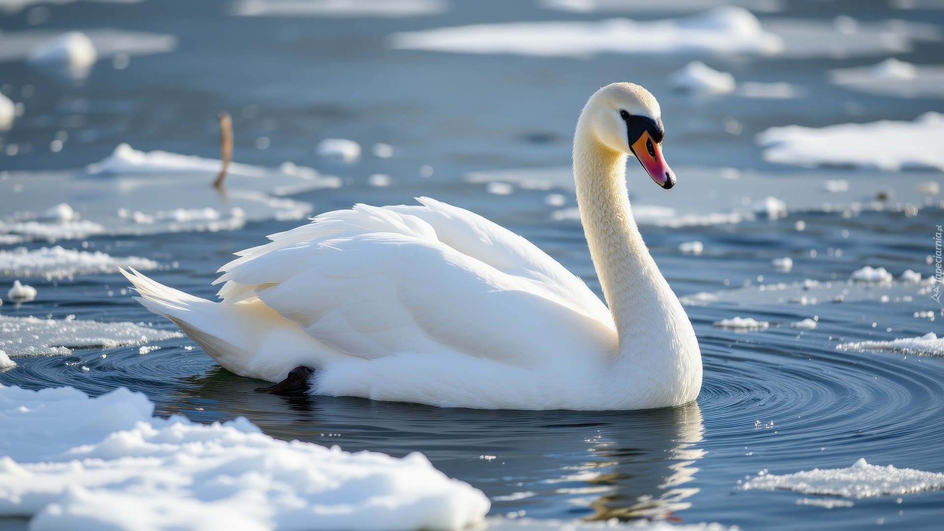 Edytor tapety: Łabędź i śnieg na wodzie