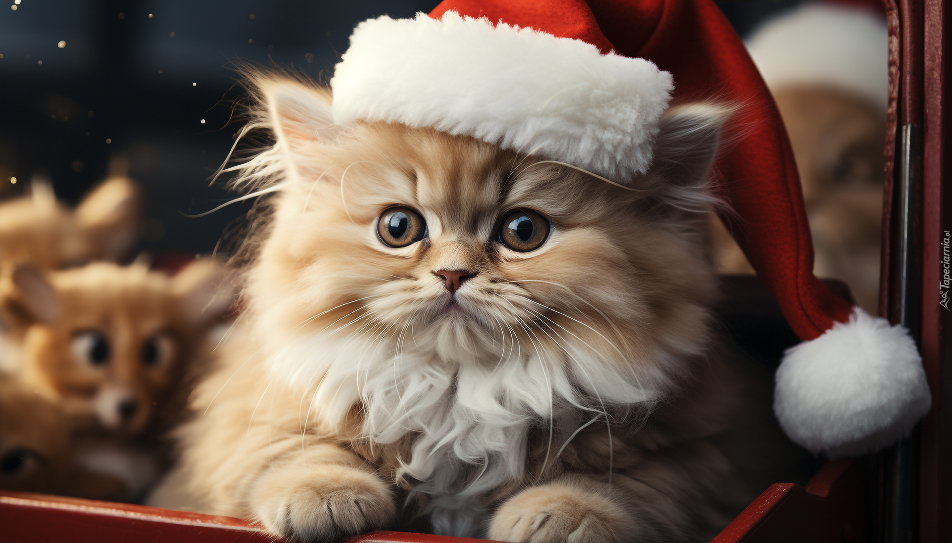 Edytor tapety: Kot w czapce świętego mikołaja