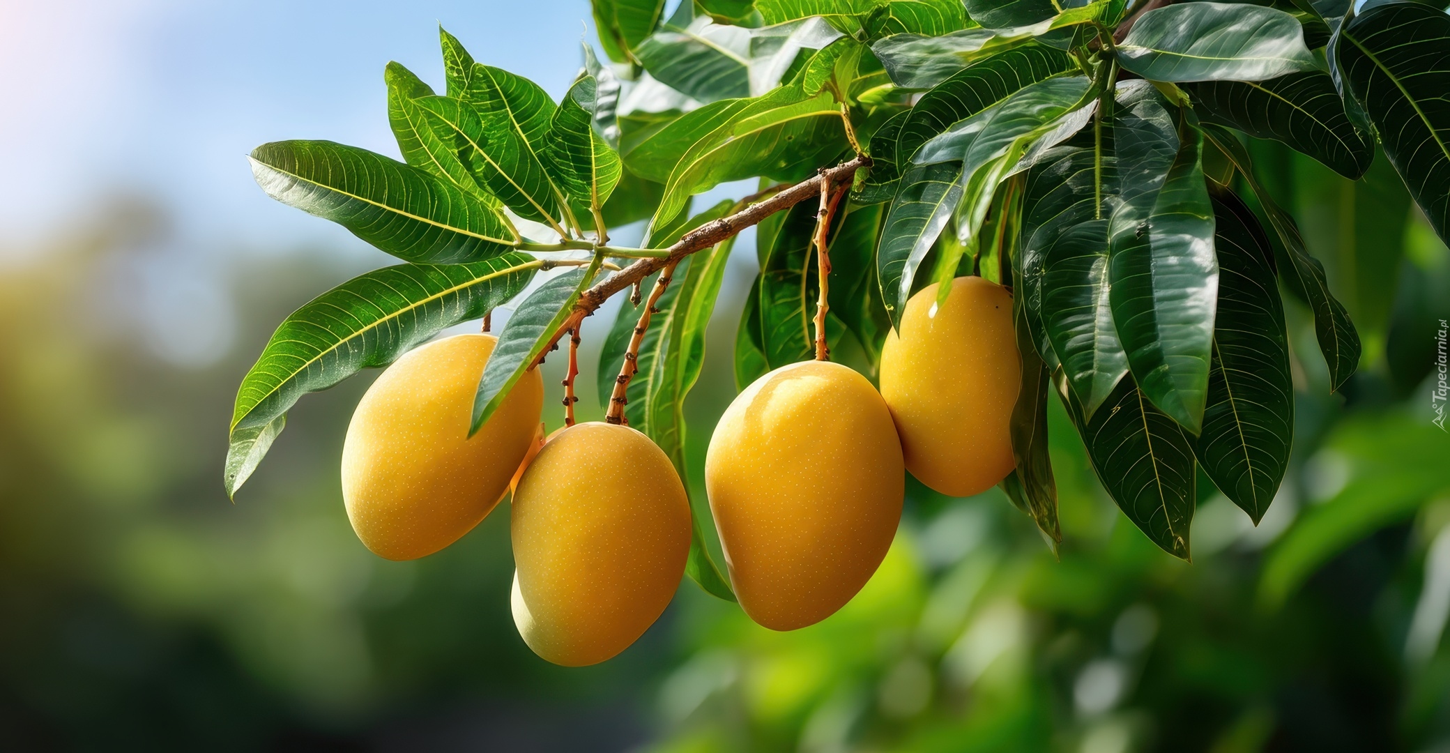 Edytor tapety: Owoce mango i liście na gałązce