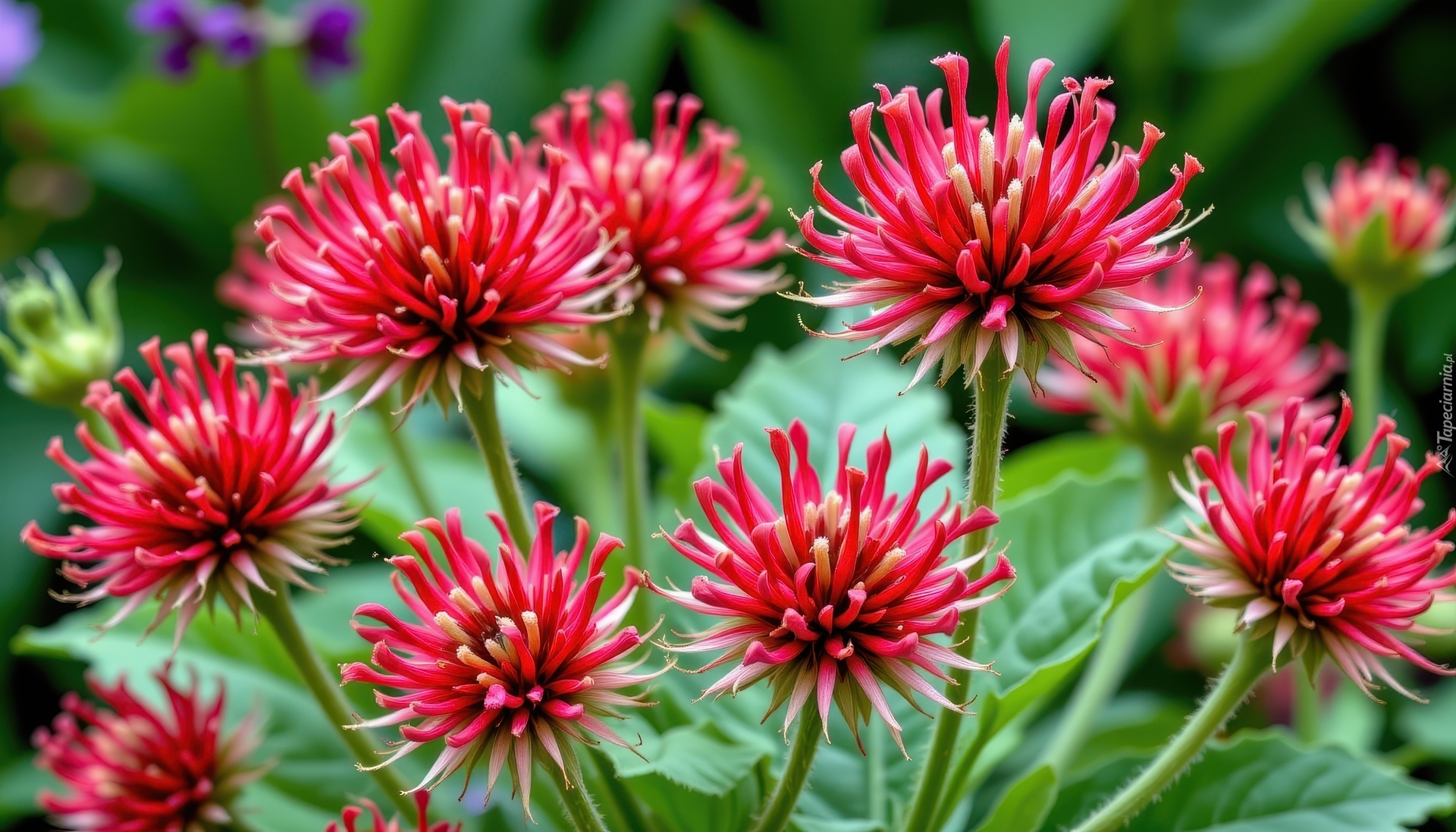 Edytor tapety: Czerwone igiełkowe kwiaty w zbliżeniu