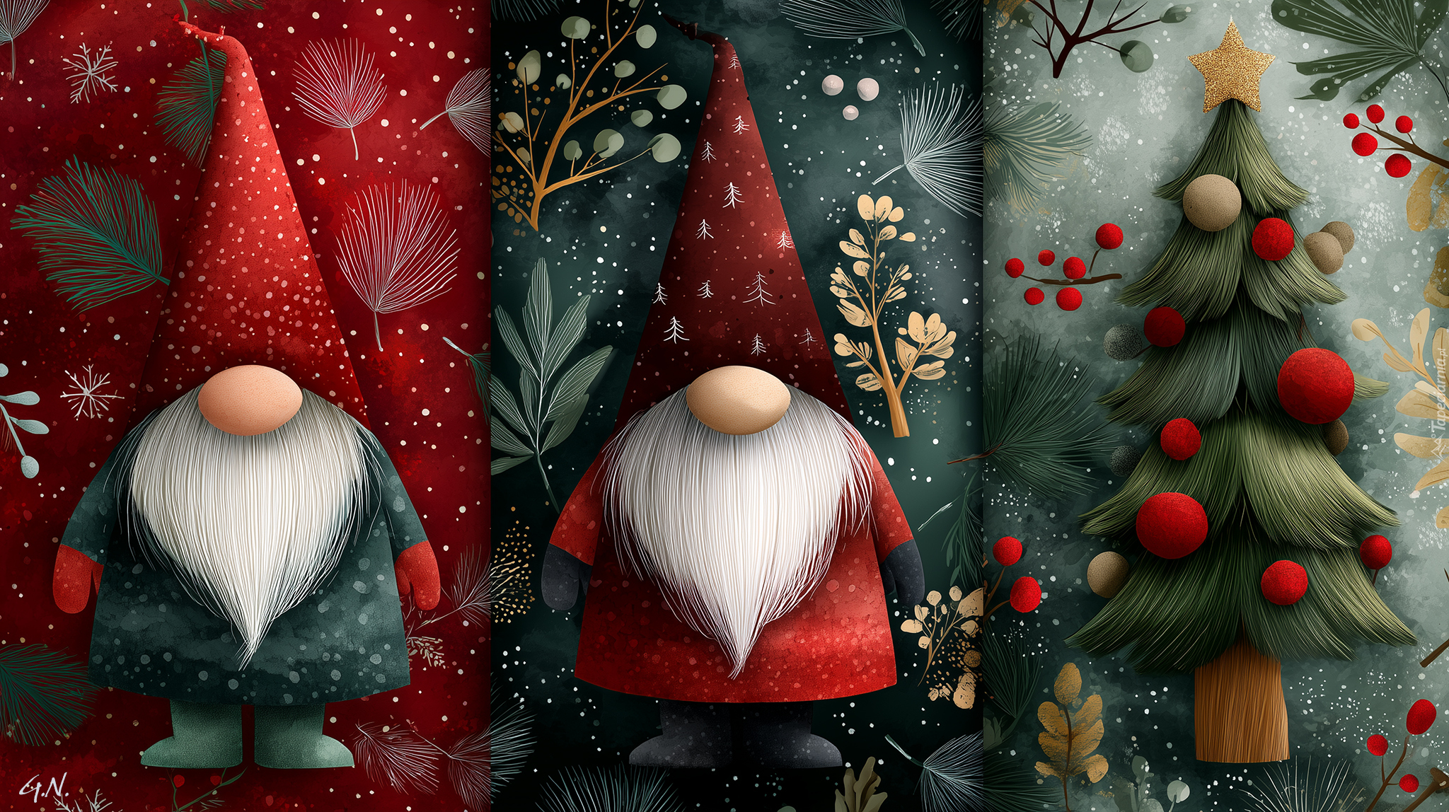 Edytor tapety: Dwa skrzaty i choinka w grafice