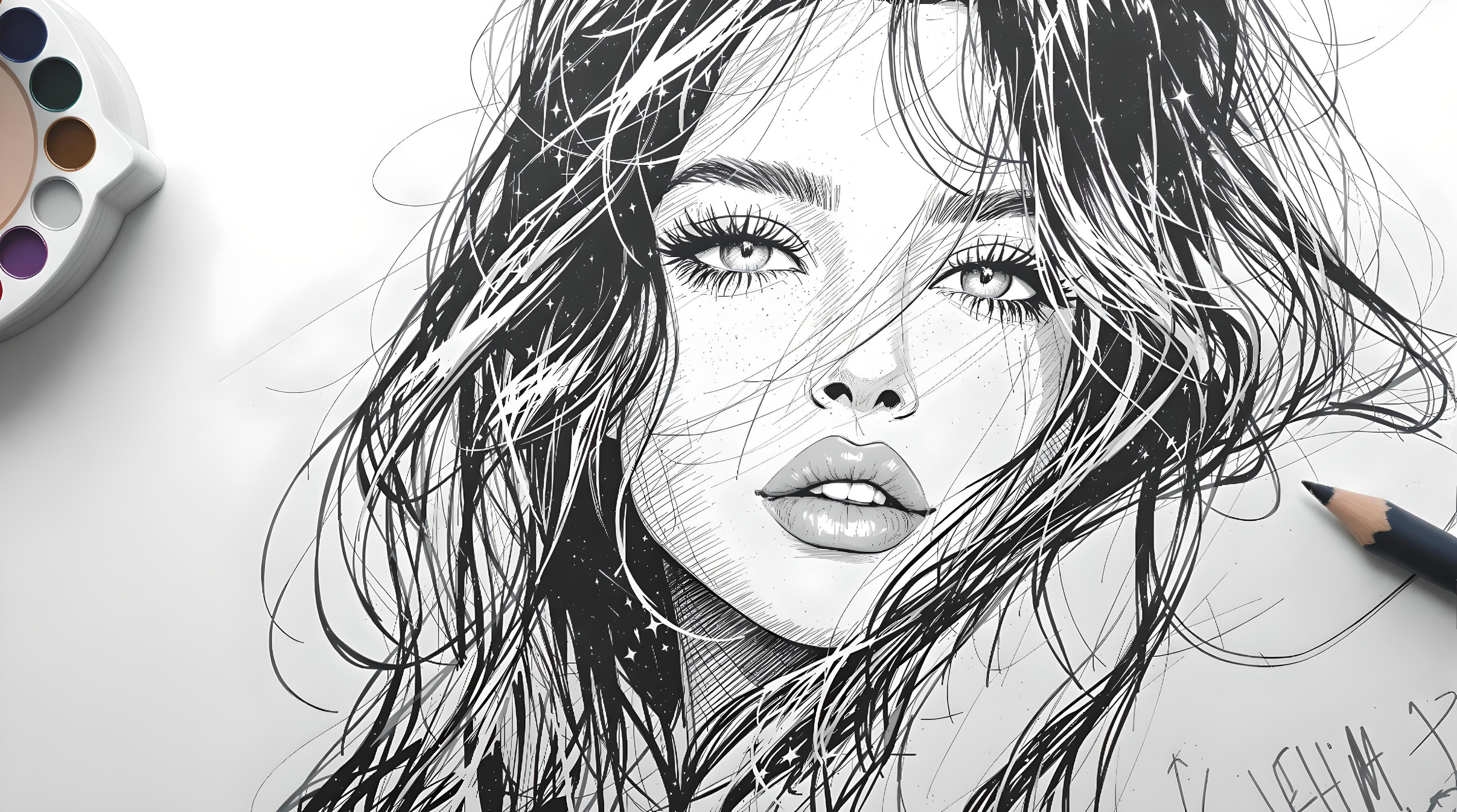 Edytor tapety: Rysunek twarzy dziewczyny z długimi włosami