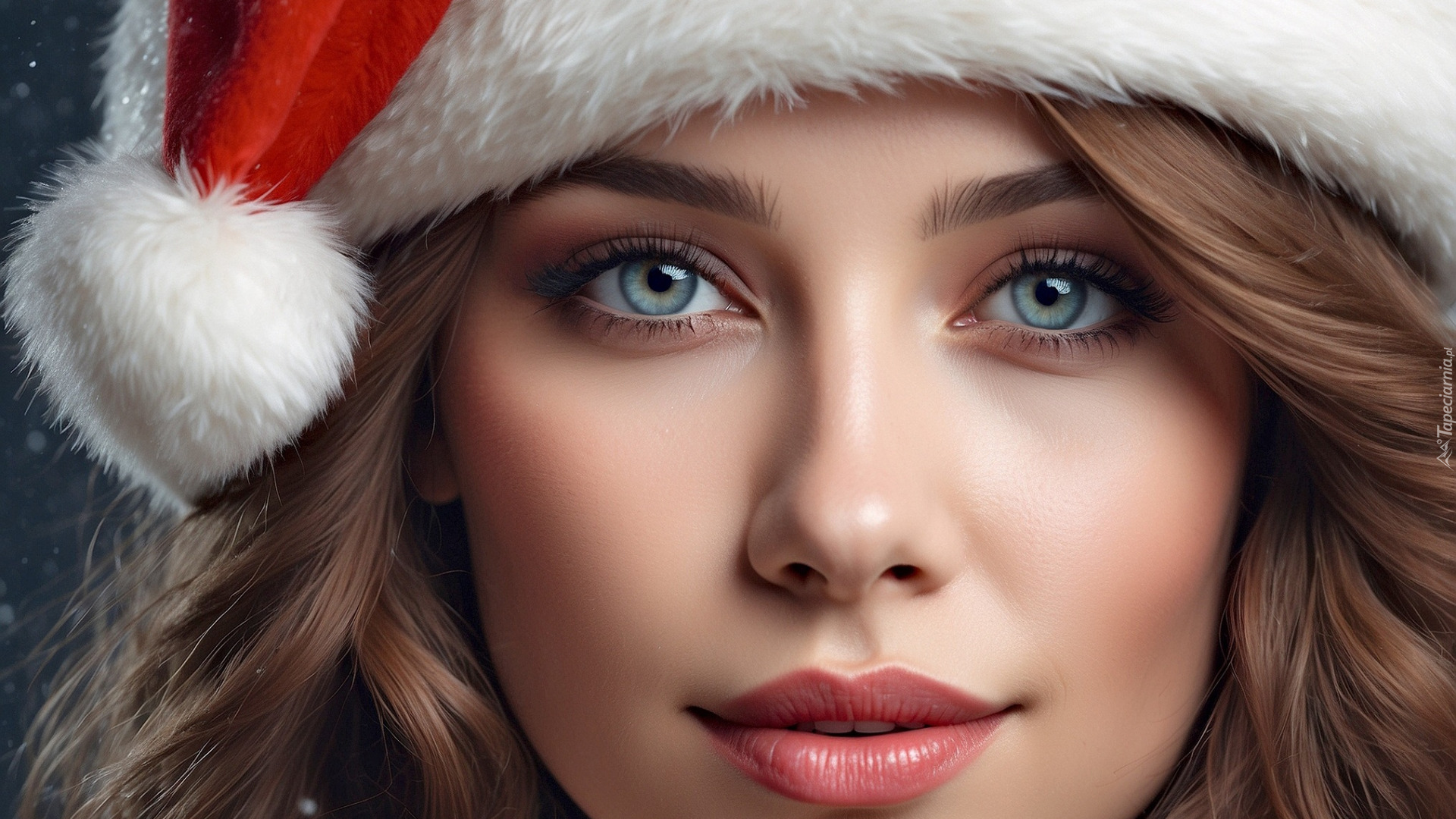 Edytor tapety: Uśmiechnięta długowłosa dziewczyna w czapce Mikołaja