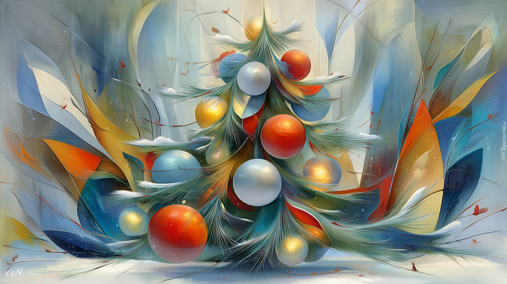 Edytor tapety: Grafika z kolorowymi bombkami na choince