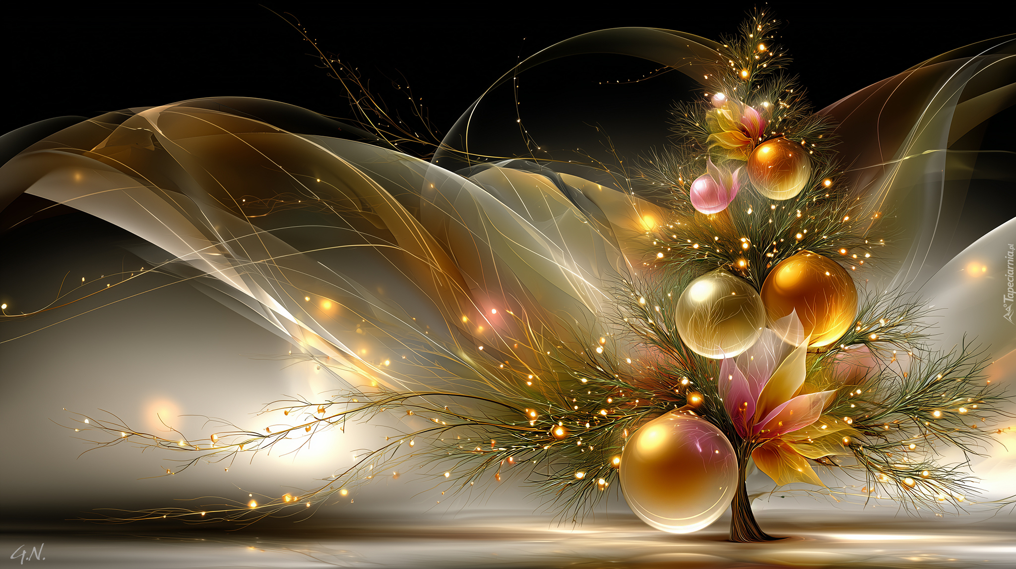 Edytor tapety: Kolorowe bombki na choince w grafice