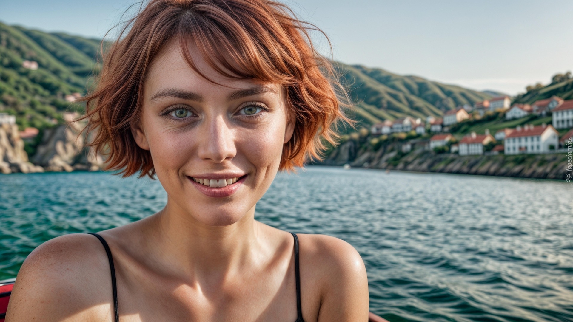 Edytor tapety: Uśmiech na twarzy kobiety z krótkimi włosami