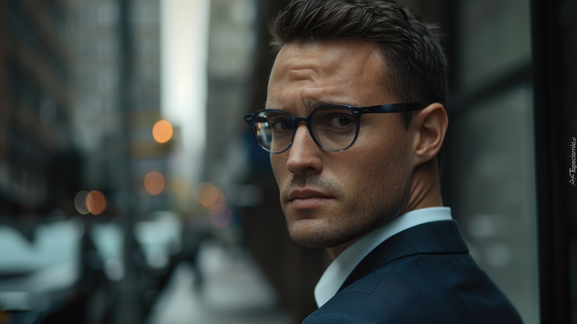 Edytor tapety: Spojrzenie mężczyzny w okularach