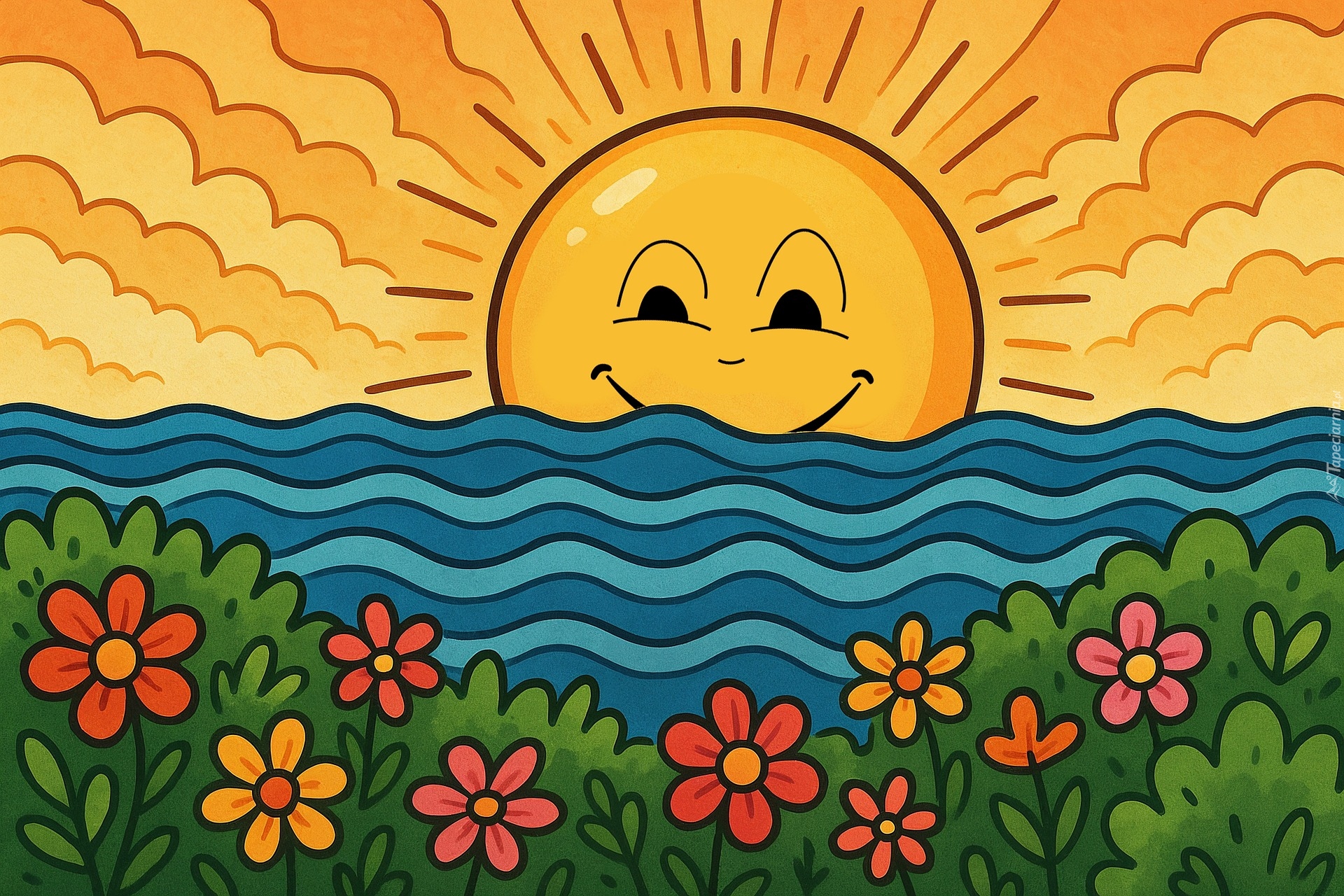 Edytor tapety: Wschodzące słońce w grafice